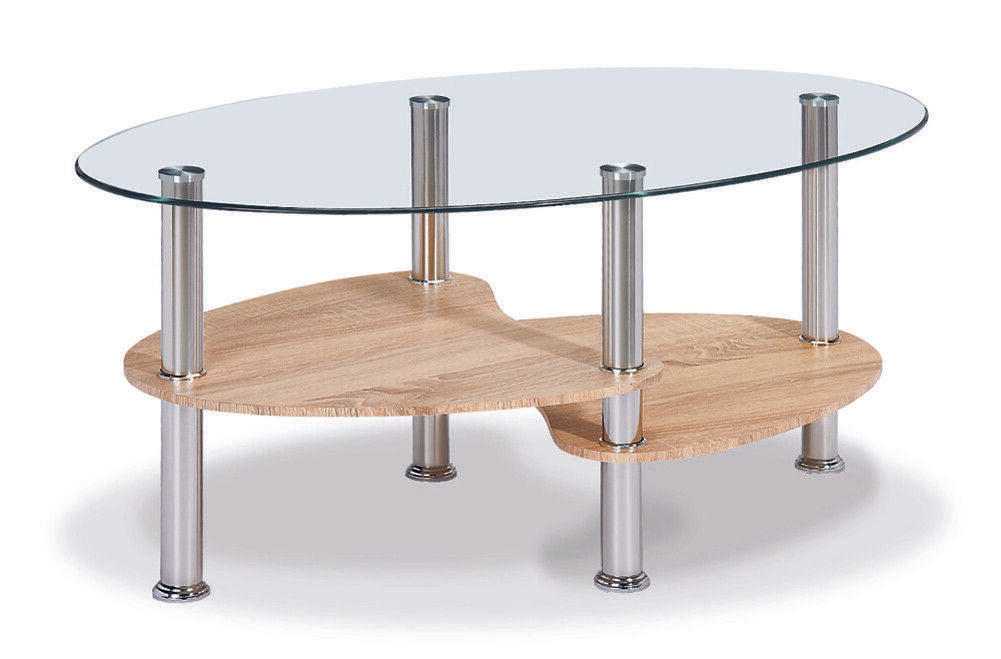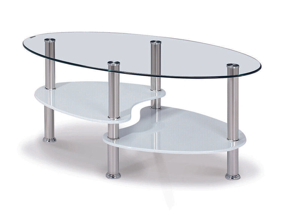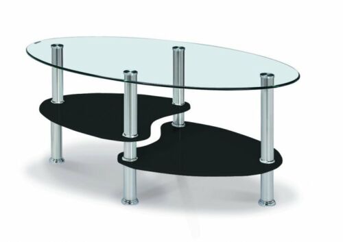 Coffee Table Clear Glass Oval Top Gloss White Black Natural Shelf Chrome Legs