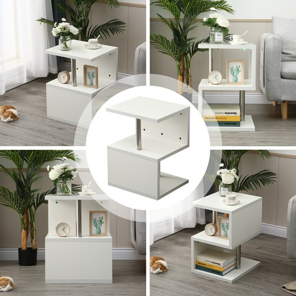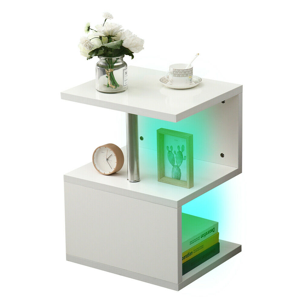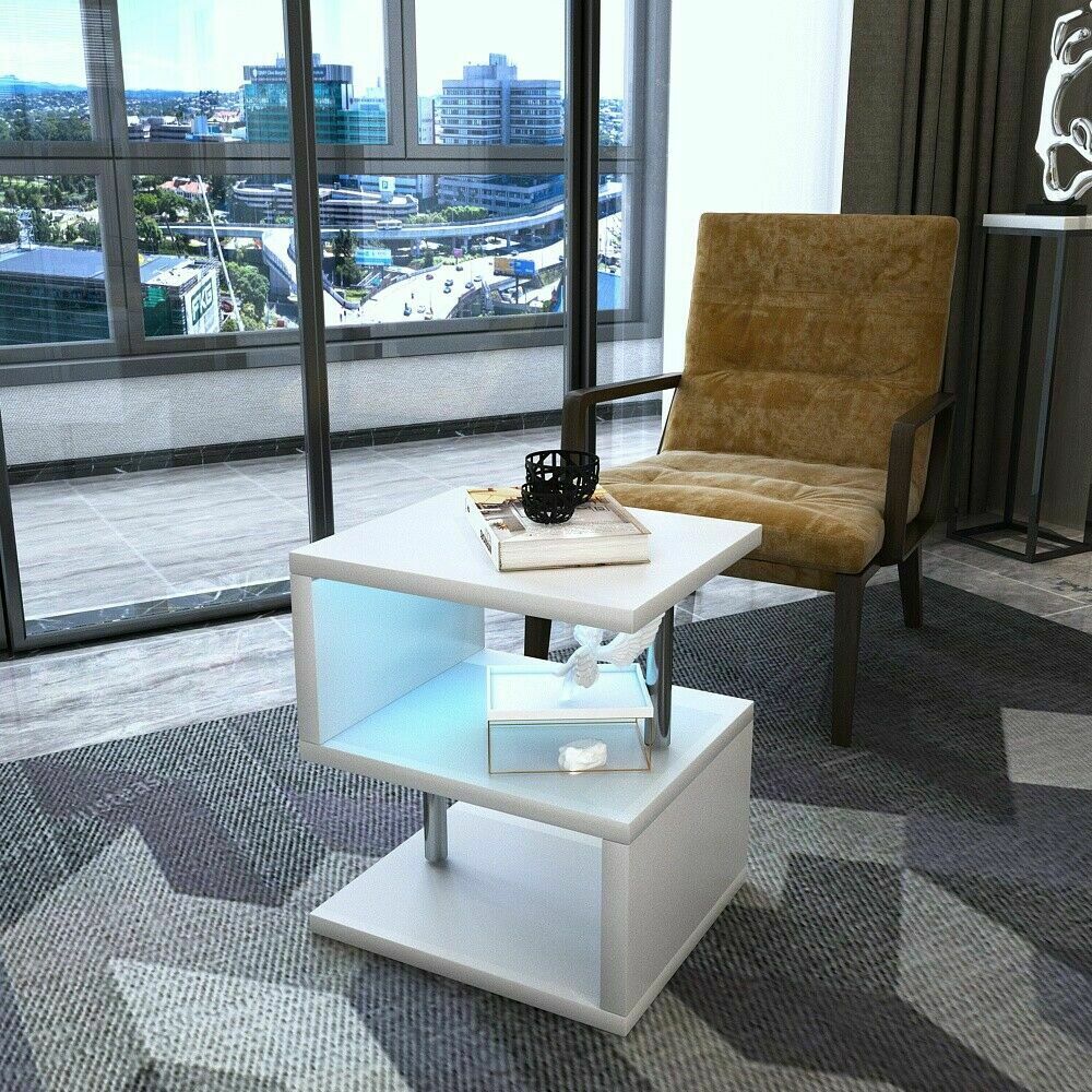 Coffee Table High Gloss 2 Tier Side RGB LED Light Storage Living Room Furniture
