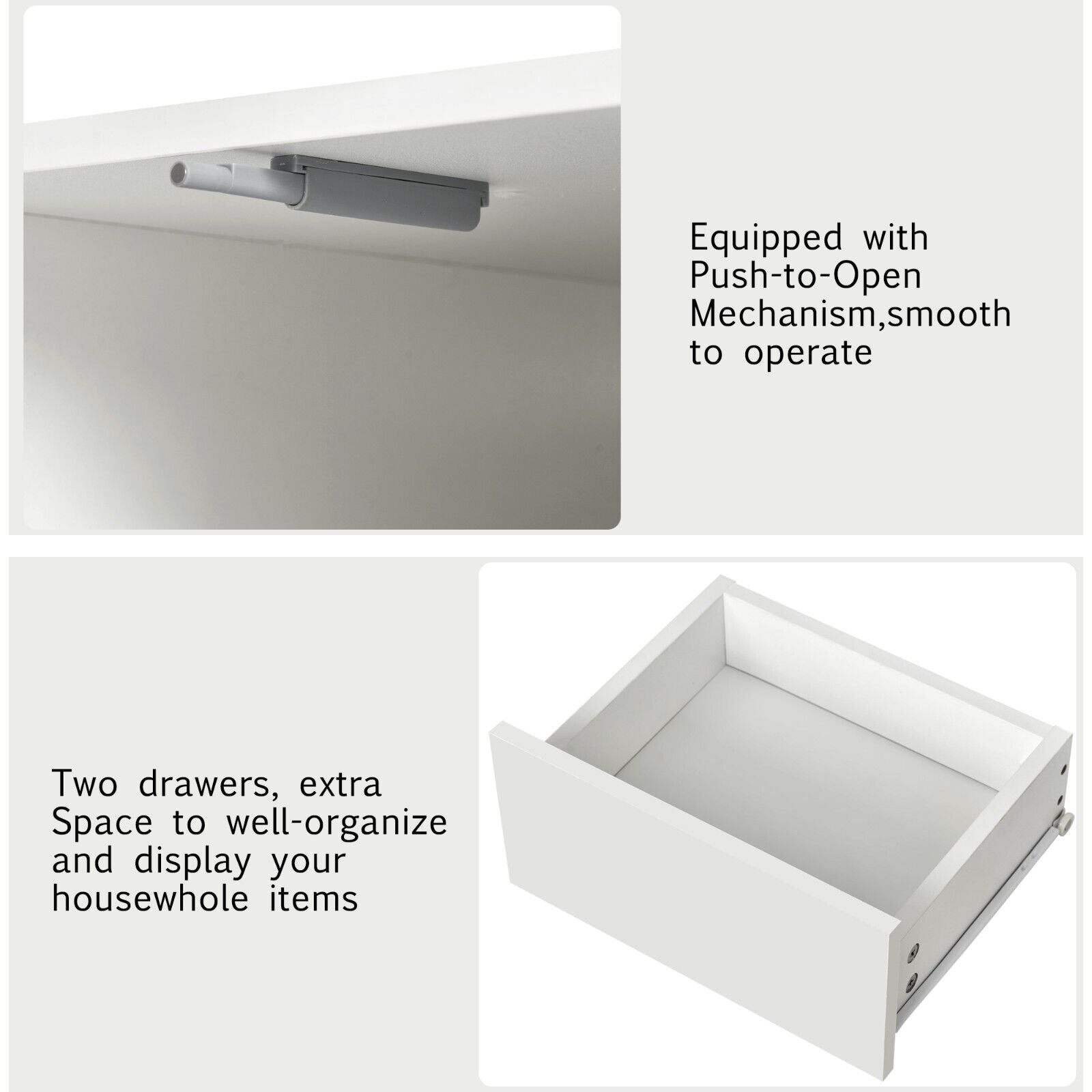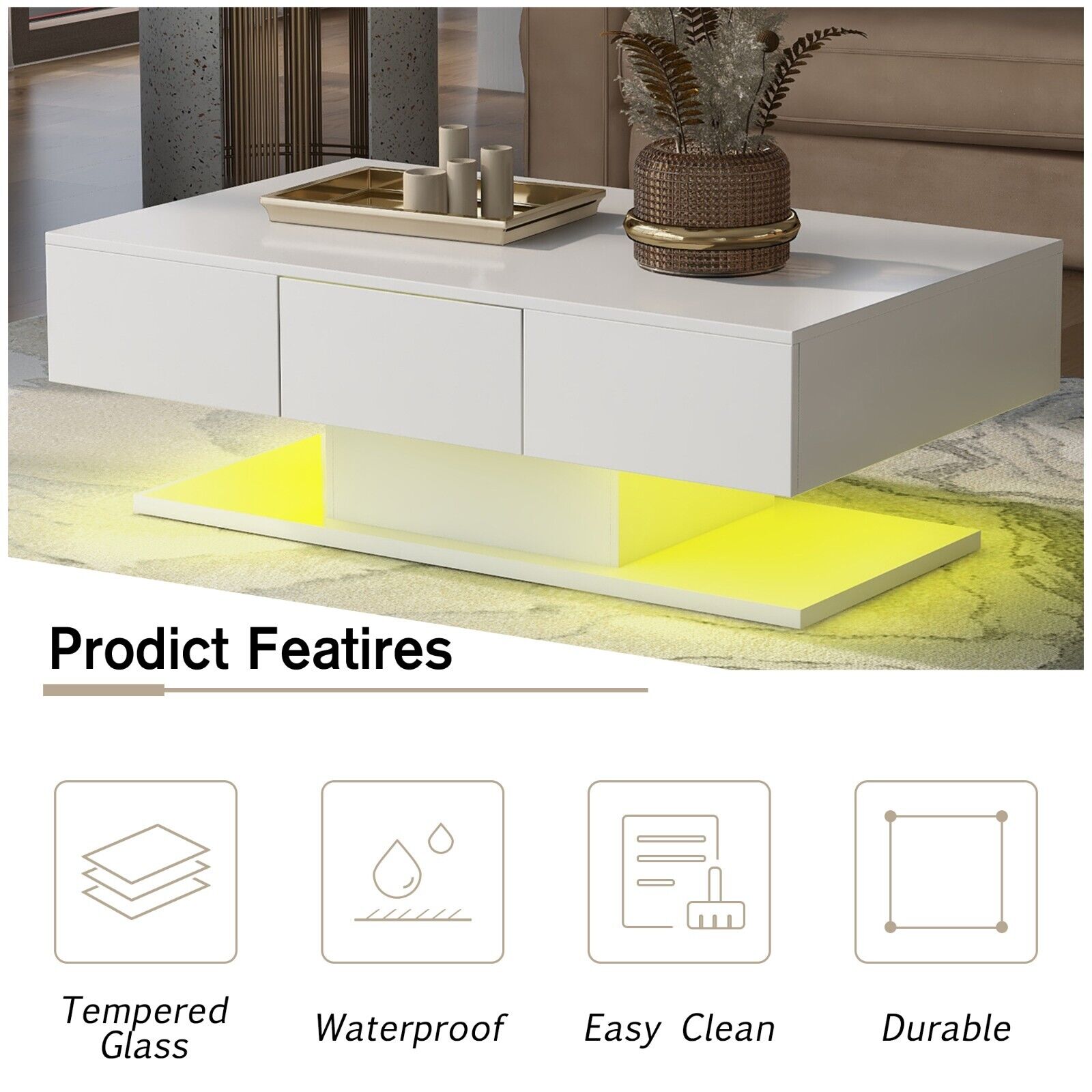 Coffee Table High Gloss Storage Cabinet LED RGB Light Drawers White Living Room