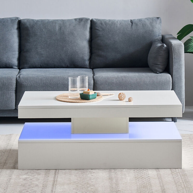 Coffee Table LED High Gloss White Rectangle Cocktail Table Modern Living Room