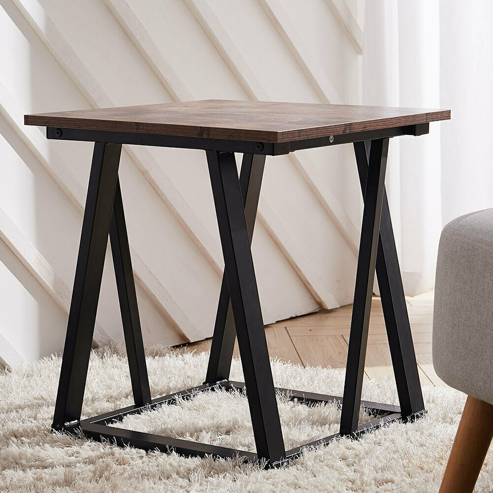Coffee Table Matte Black Square Sofa Side Small Night Stand End Table Metal Legs