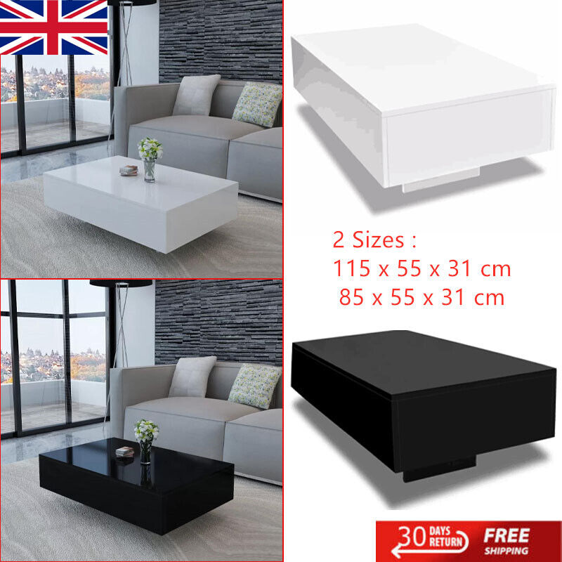 Coffee Table Modern Rectangular Black/White High Gloss Home Office Livingroom