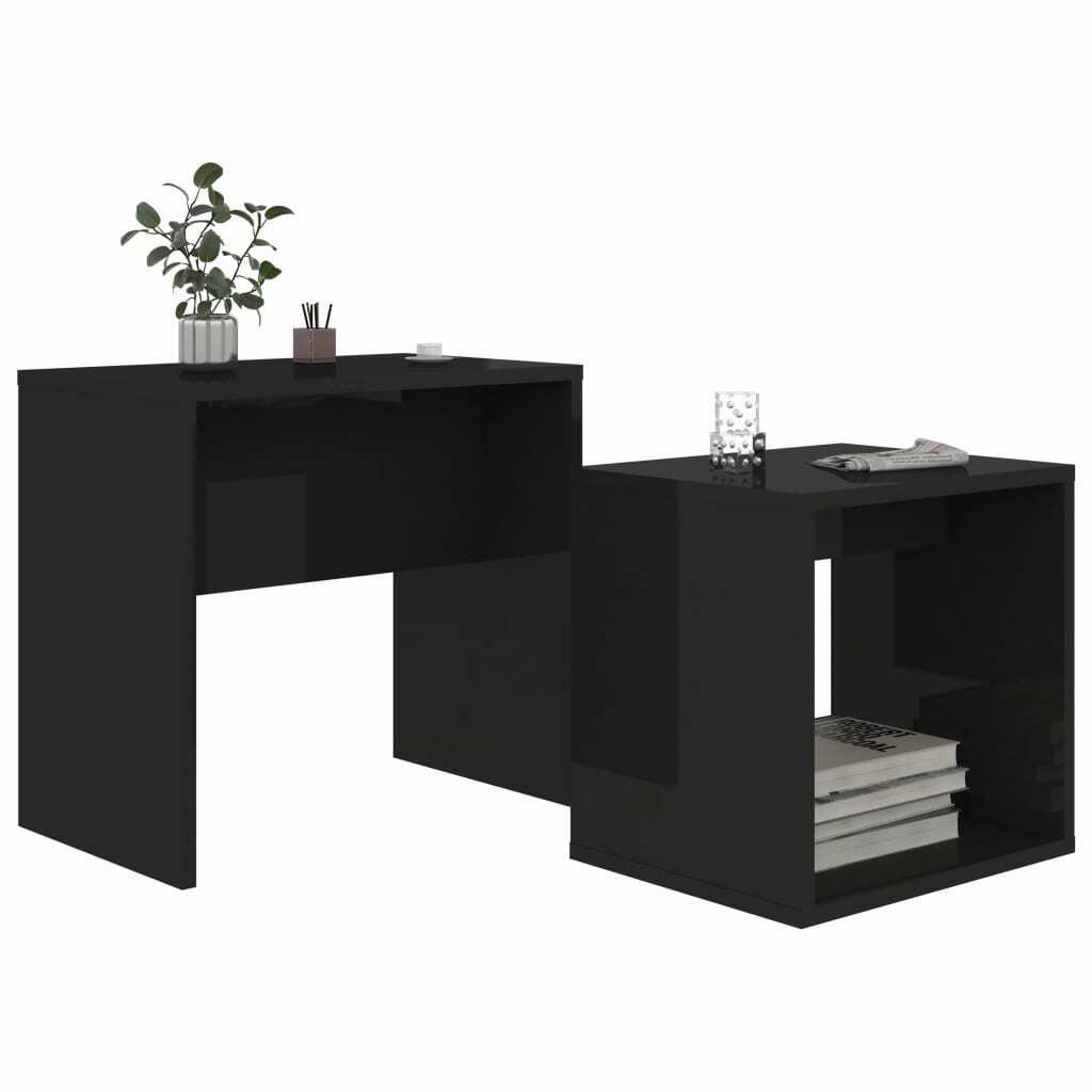 Coffee Table Set Chipboard Accent Side Nesting Tables High Gloss Black