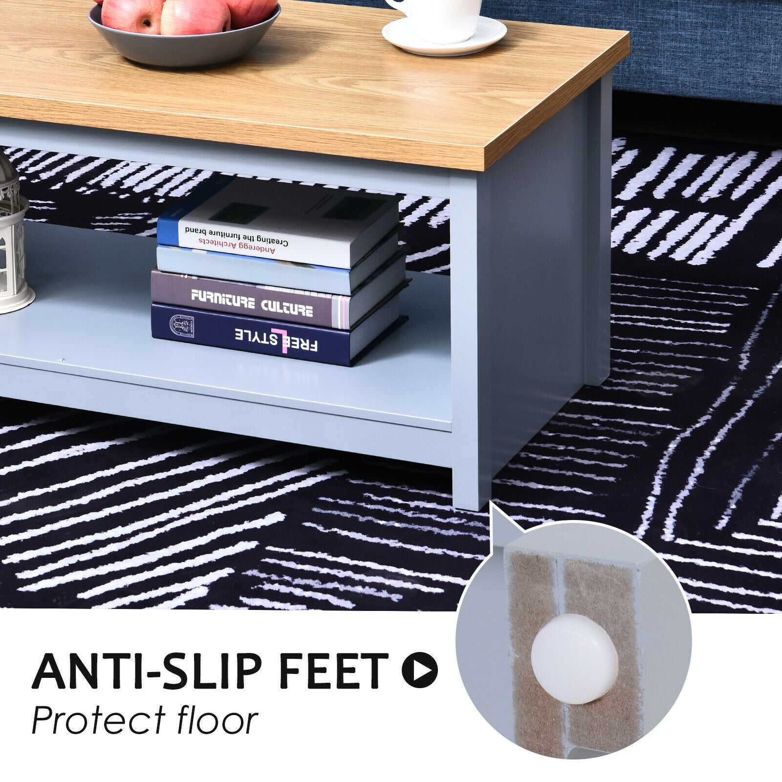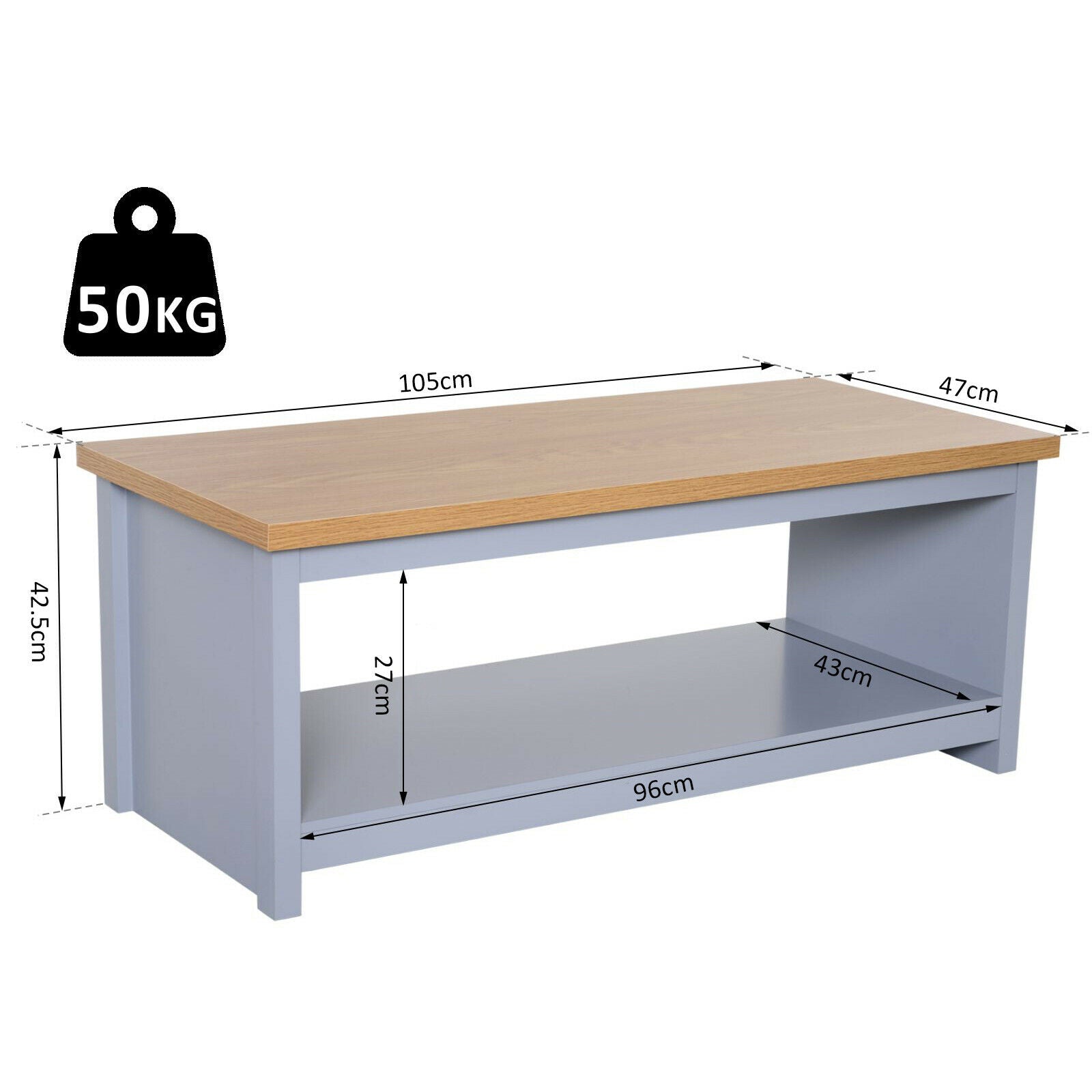 Coffee Table w/ Open Display Wood Effect Tabletop Retro Rustic Style Chic