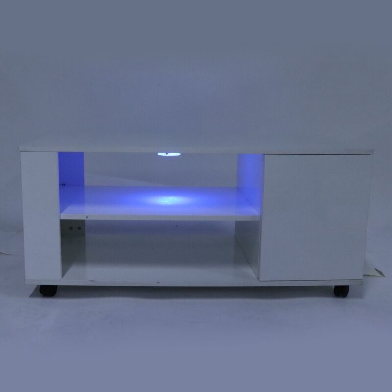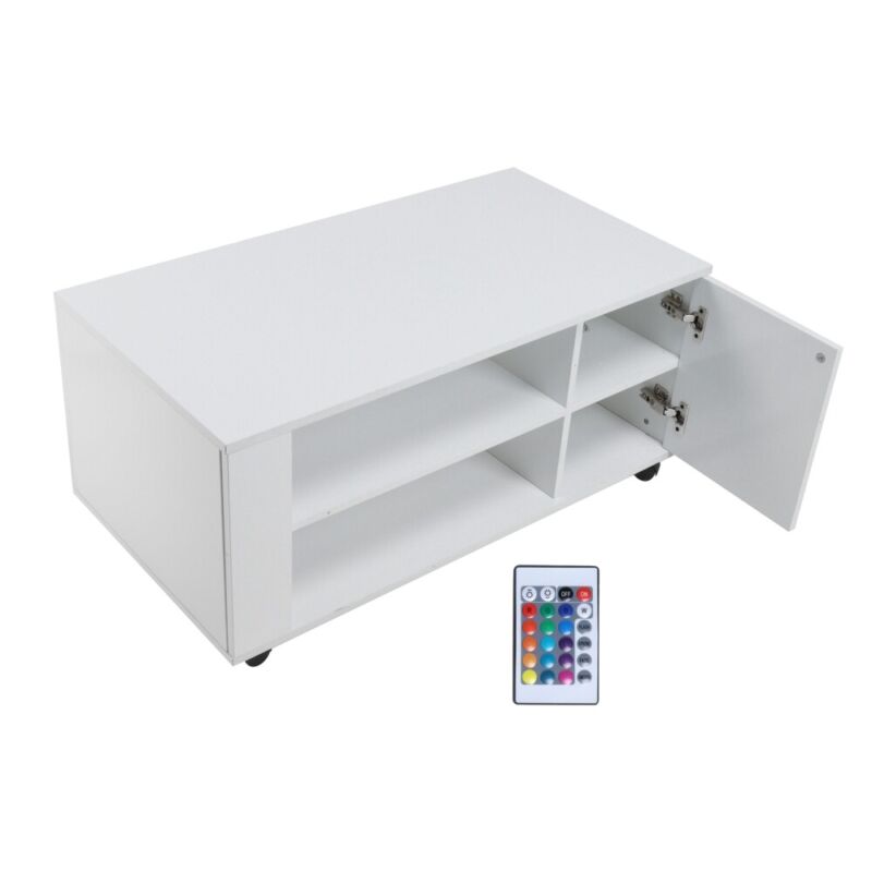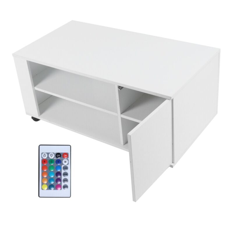 Coffee Table with Storage Shelves RGB LED Light Wood Living Room Side End Table
