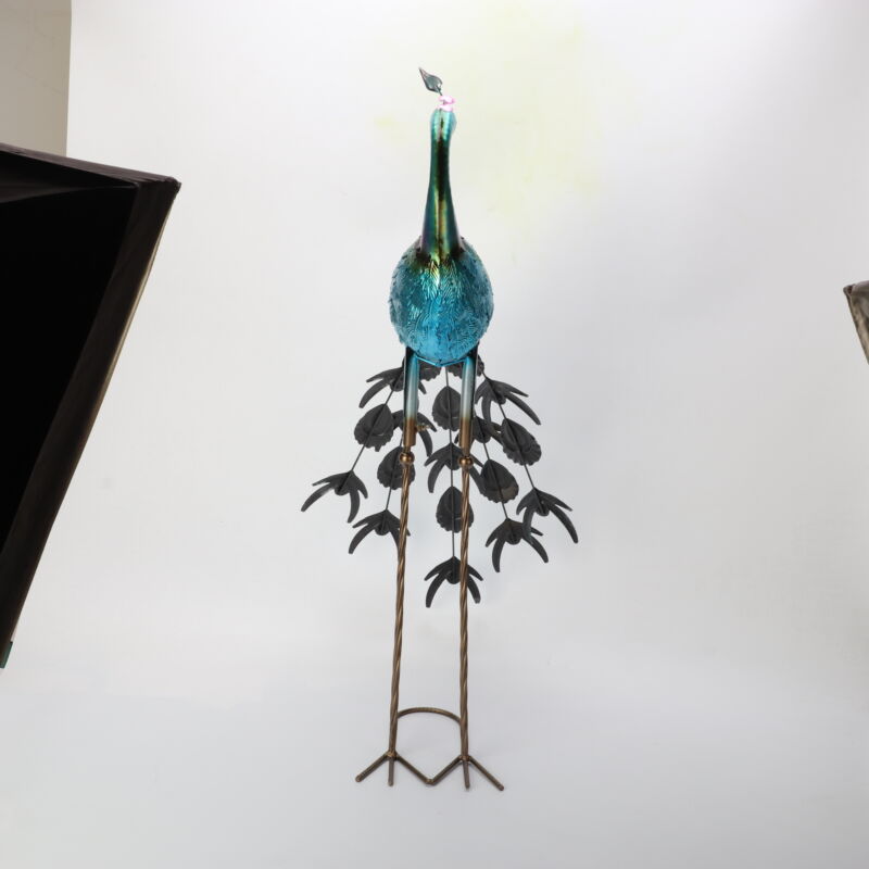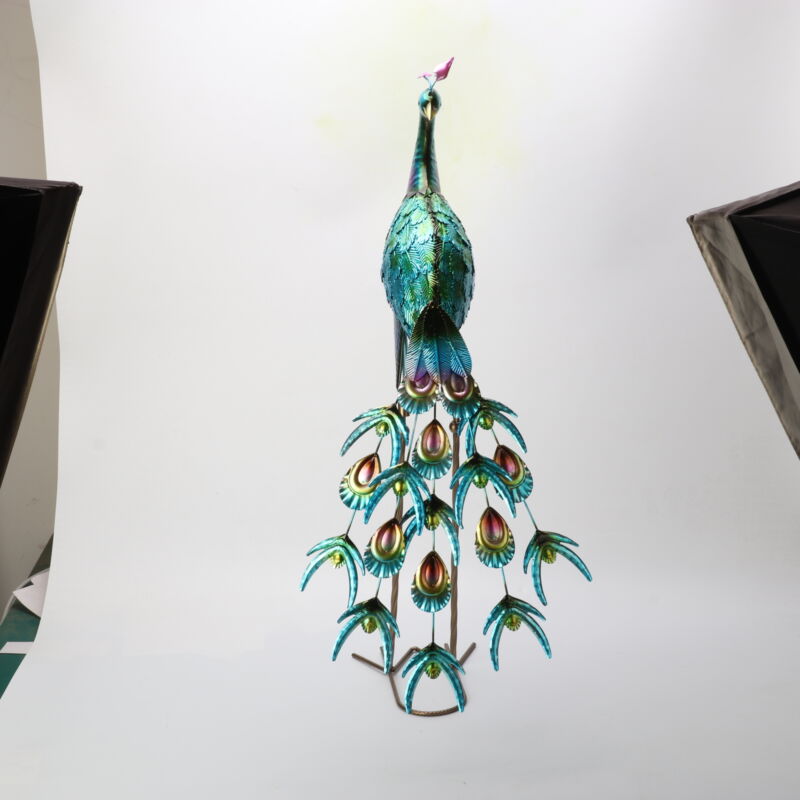 Colourful Peacock Metal Birds Garden Ornament Sculpture Friendly Features Decor