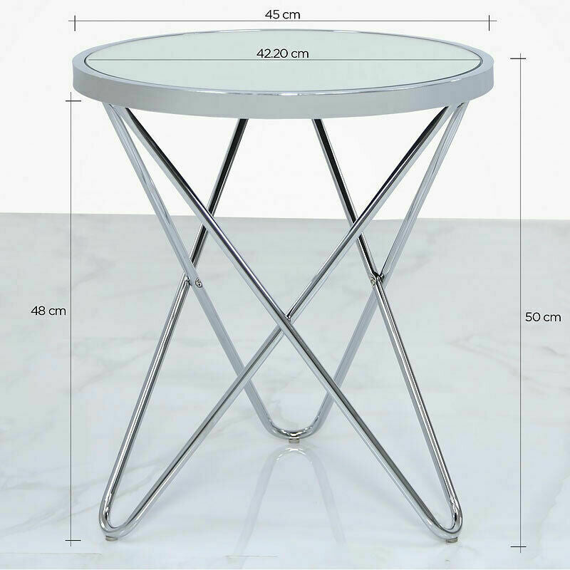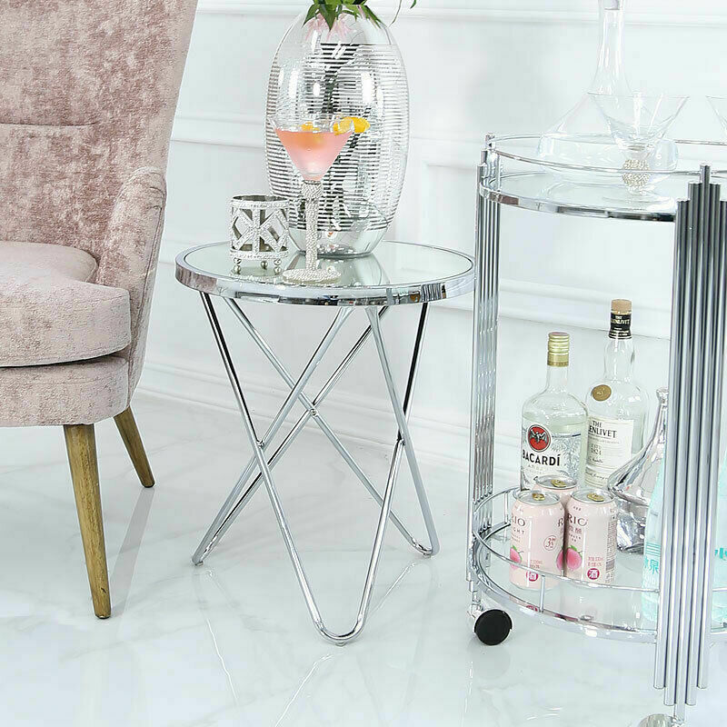 Colton Contemporary Mirrored Glass & Silver Chrome Lamp End Side Drinks Table