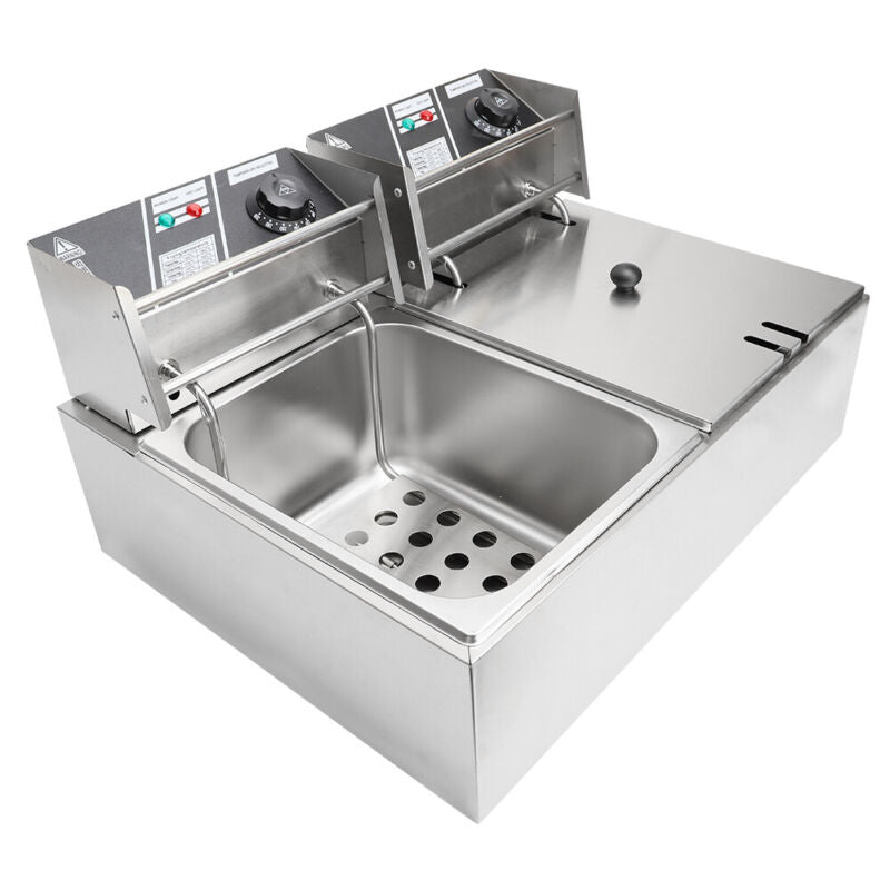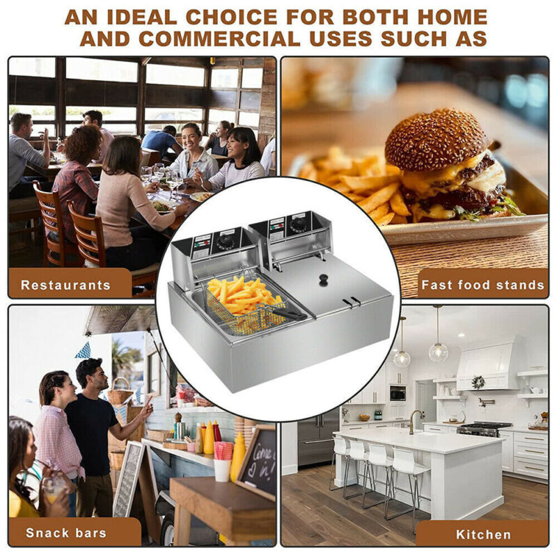 Commercial Electric Deep Fryer Fat Chip Single Dual Tank Stainless Steel 2500W