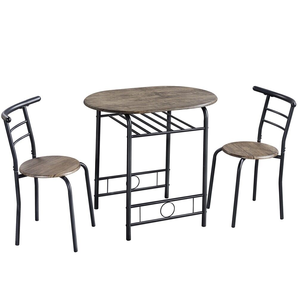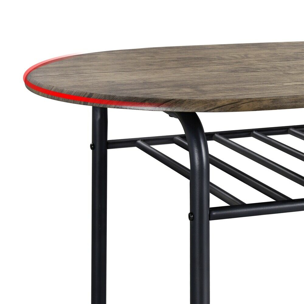 Compact Dining Room Set, 3 Piece Kitchen Breakfast Bar Table with Storage Shelf