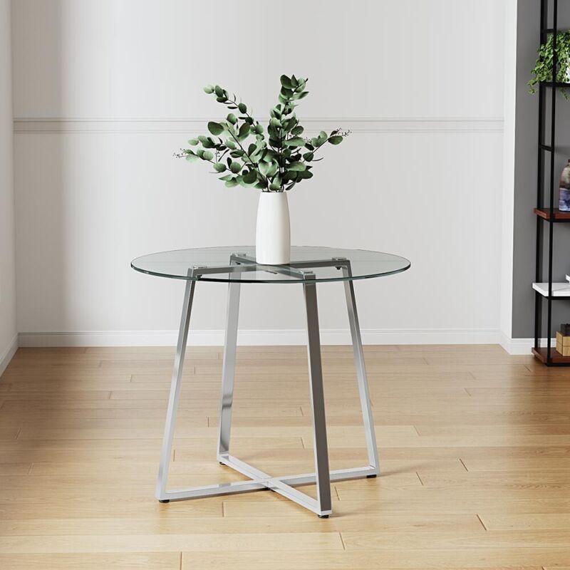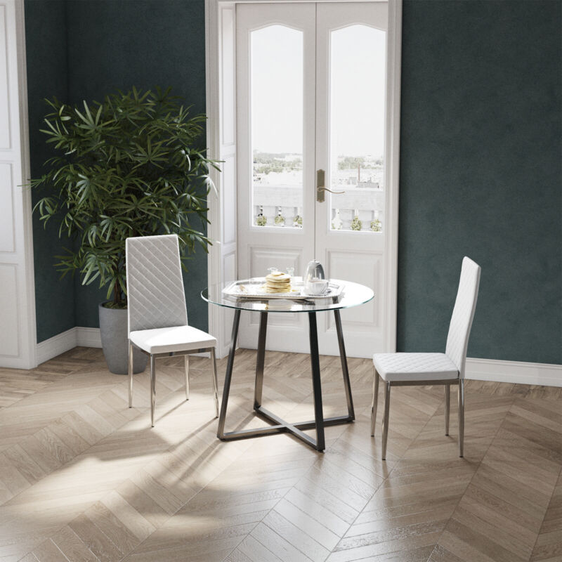 Compact Round Glass Dining Table & 2/4 Chairs Set Kitchen Room Home Furniture UK