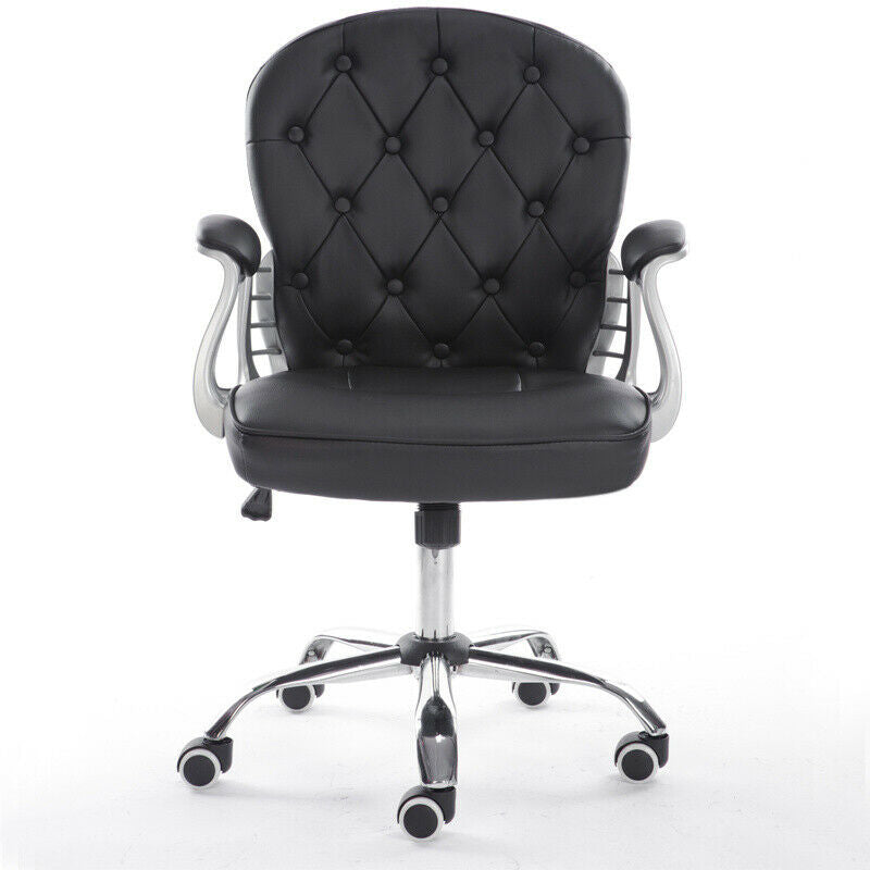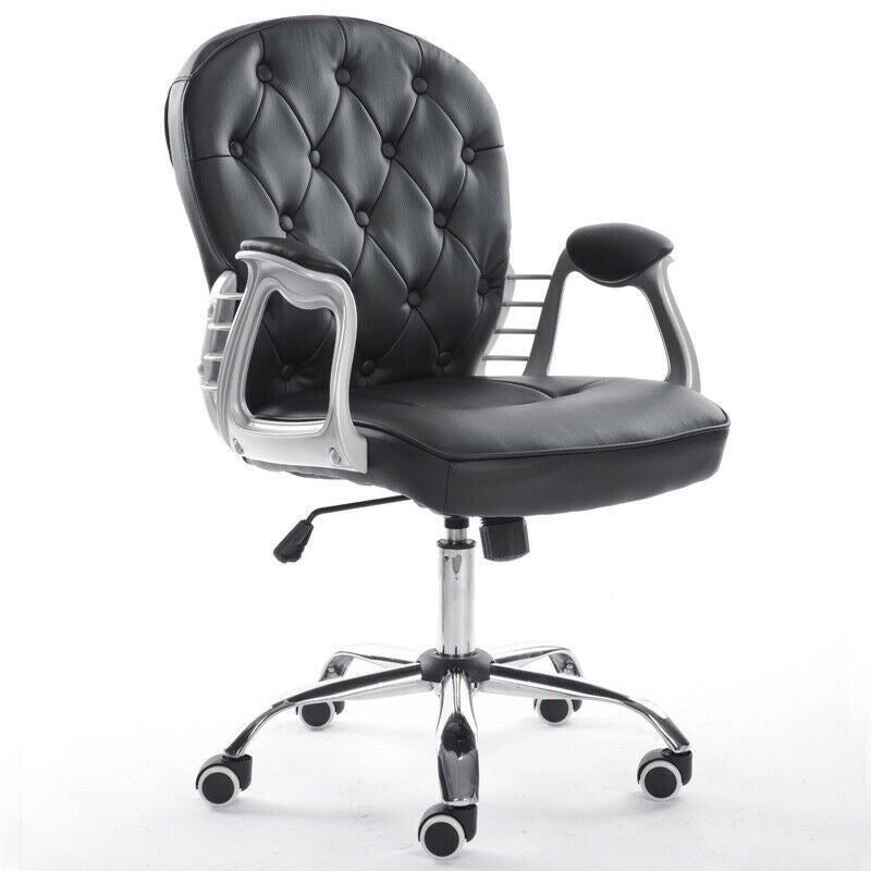 Computer Chair Leather Diamond Button Back Adjustable Swivel Study Armchair Home