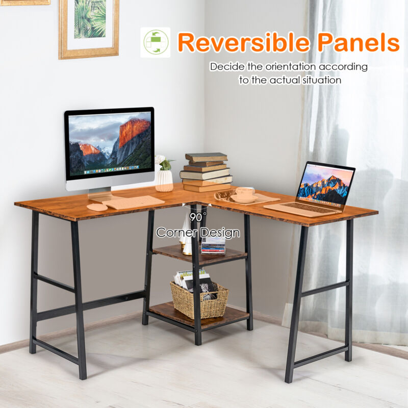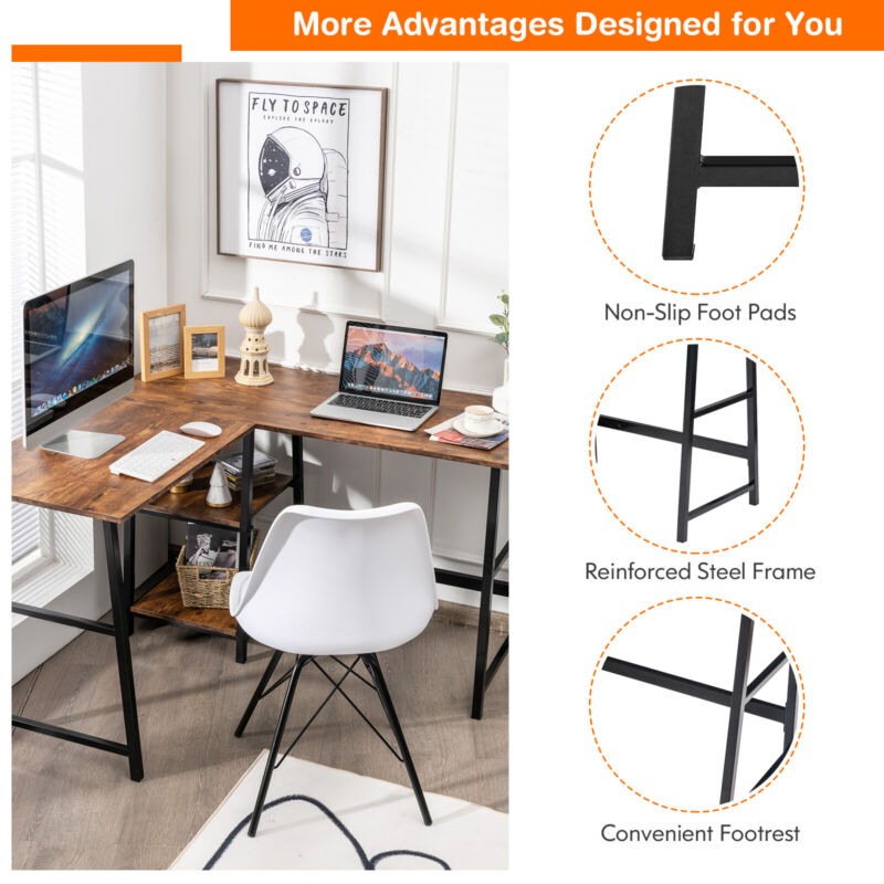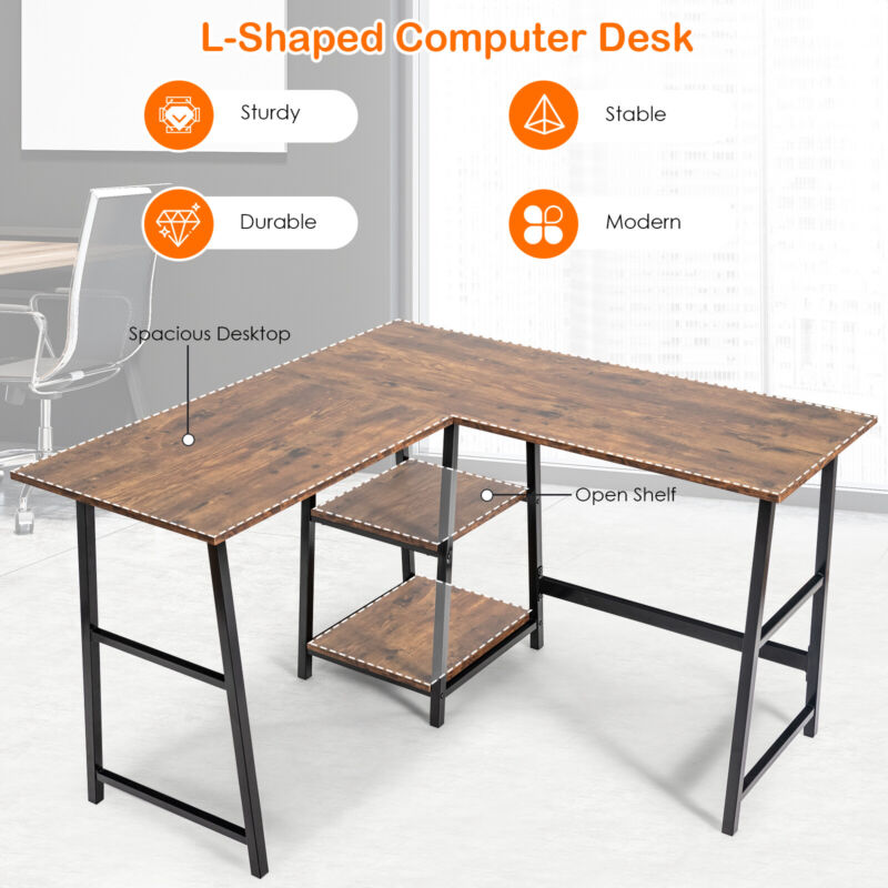 Computer Corner Desk L-Shaped Gaming Studying Table w/Metal Support & Wide Top