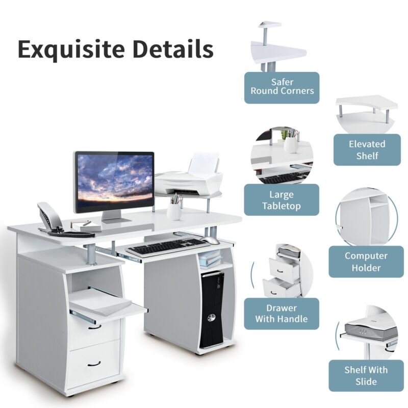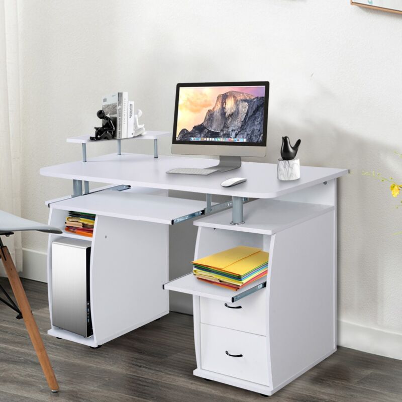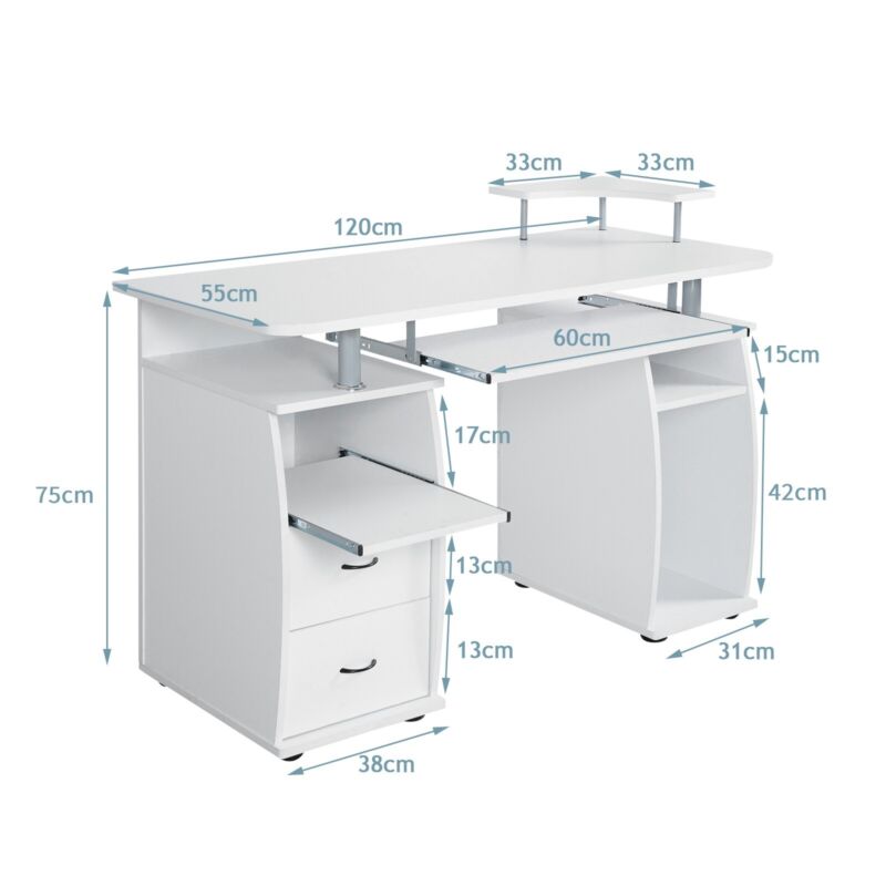 Computer Desk Home Office Workstation with 2 Drawers & Storage Compartments