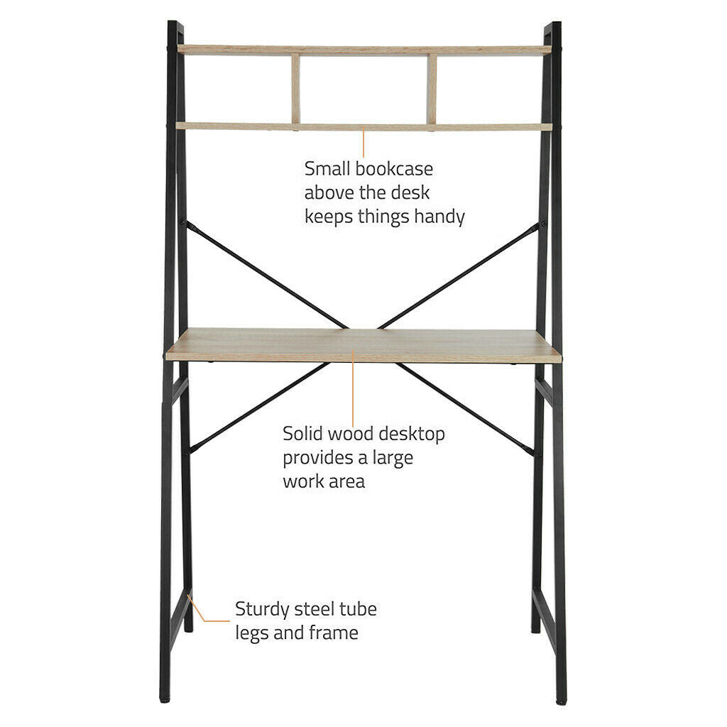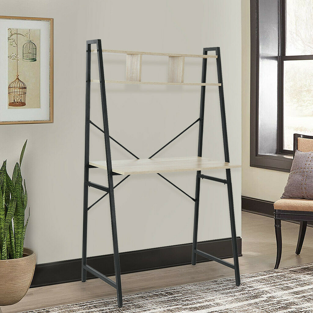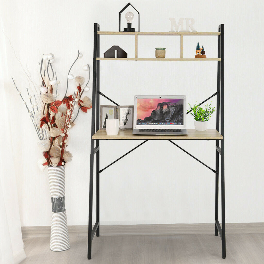 Computer Desk Ladder Desk With Shelf Student Study Table Black Metal Frame UK