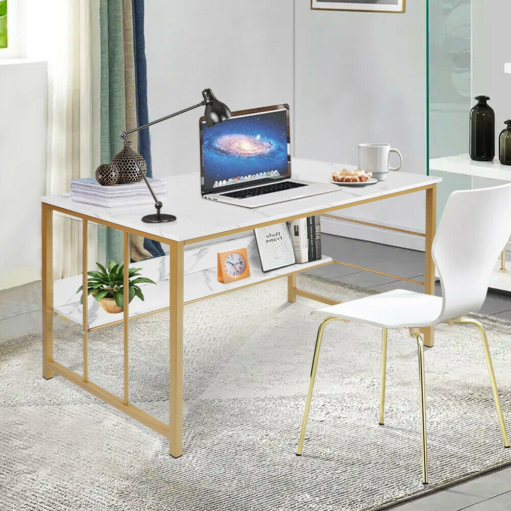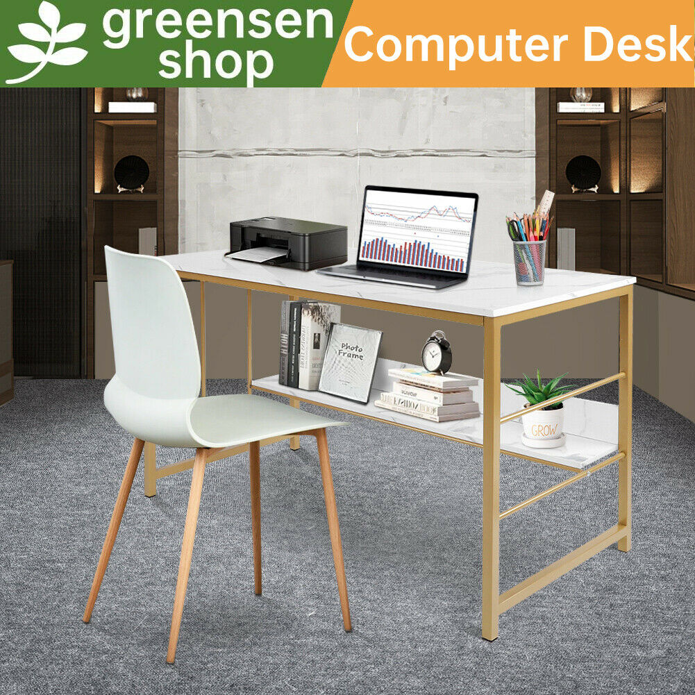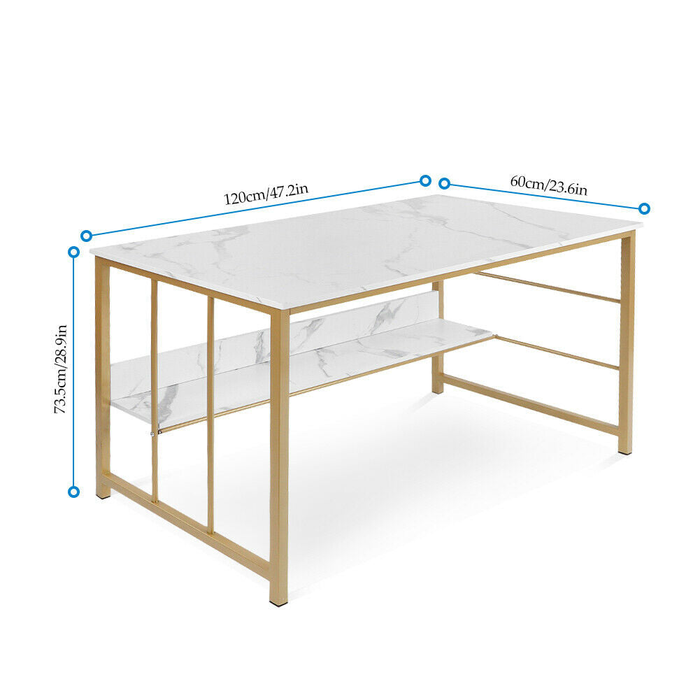 Computer Desk Laptop PC Study Table Desk with Bookhelf Workstation Marble Effect