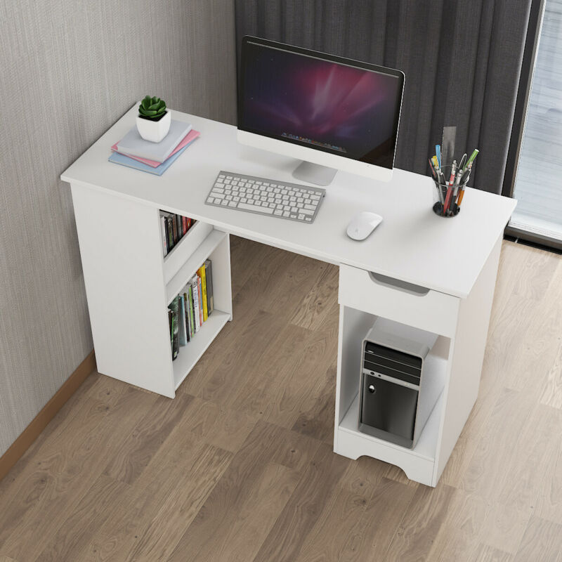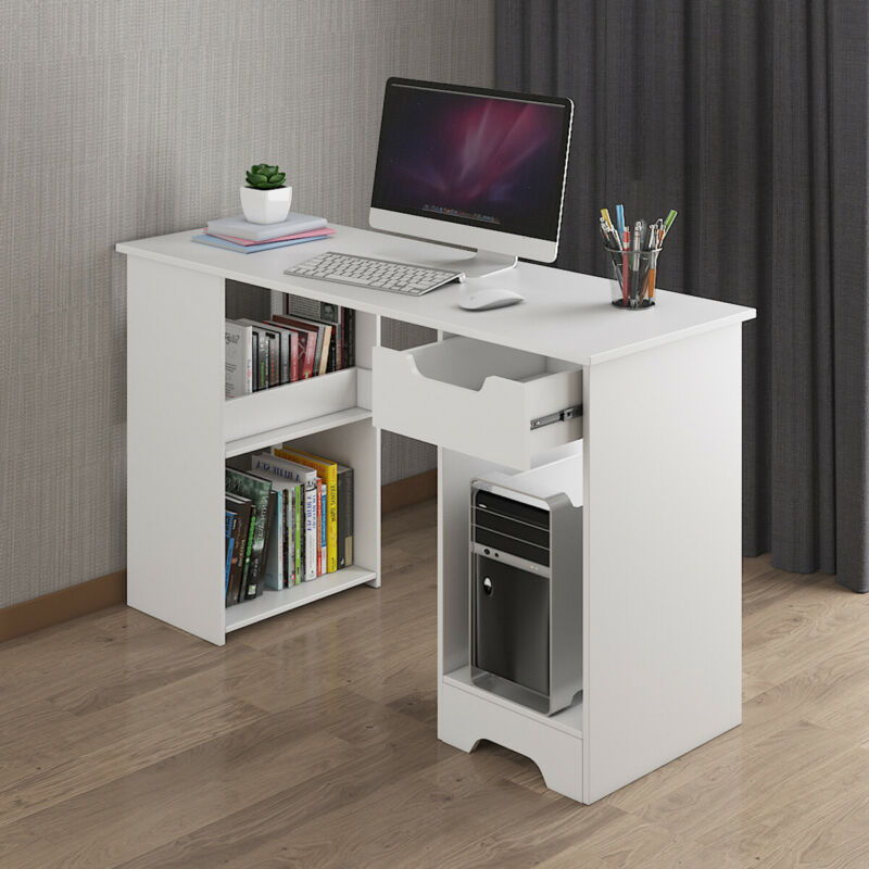 Computer Desk Office WhiteTable Workstation Study PC Furniture Drawer Bookcase H