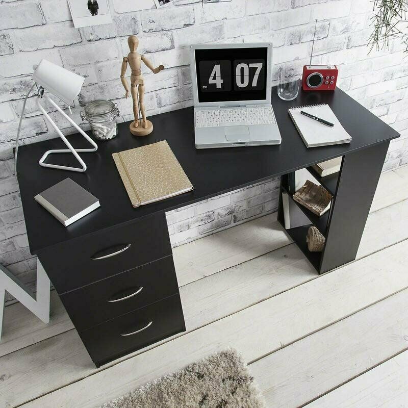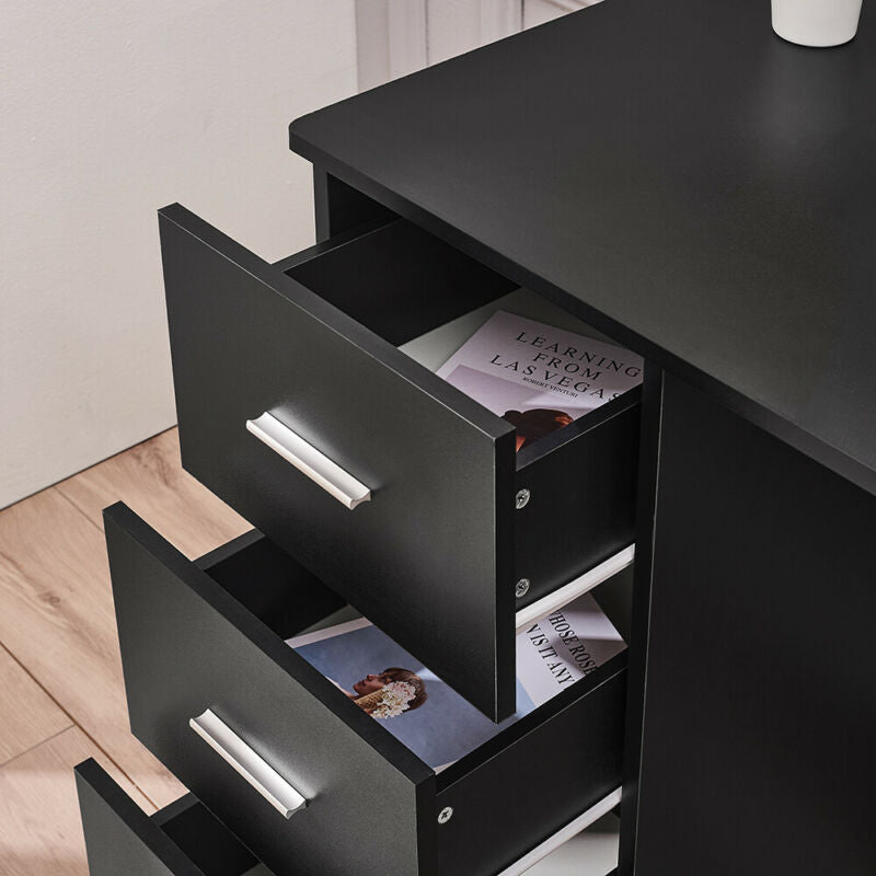 Computer Desk PC Table Office Study Storage W/3 Shelves& 3 Sliding Rail Drawers