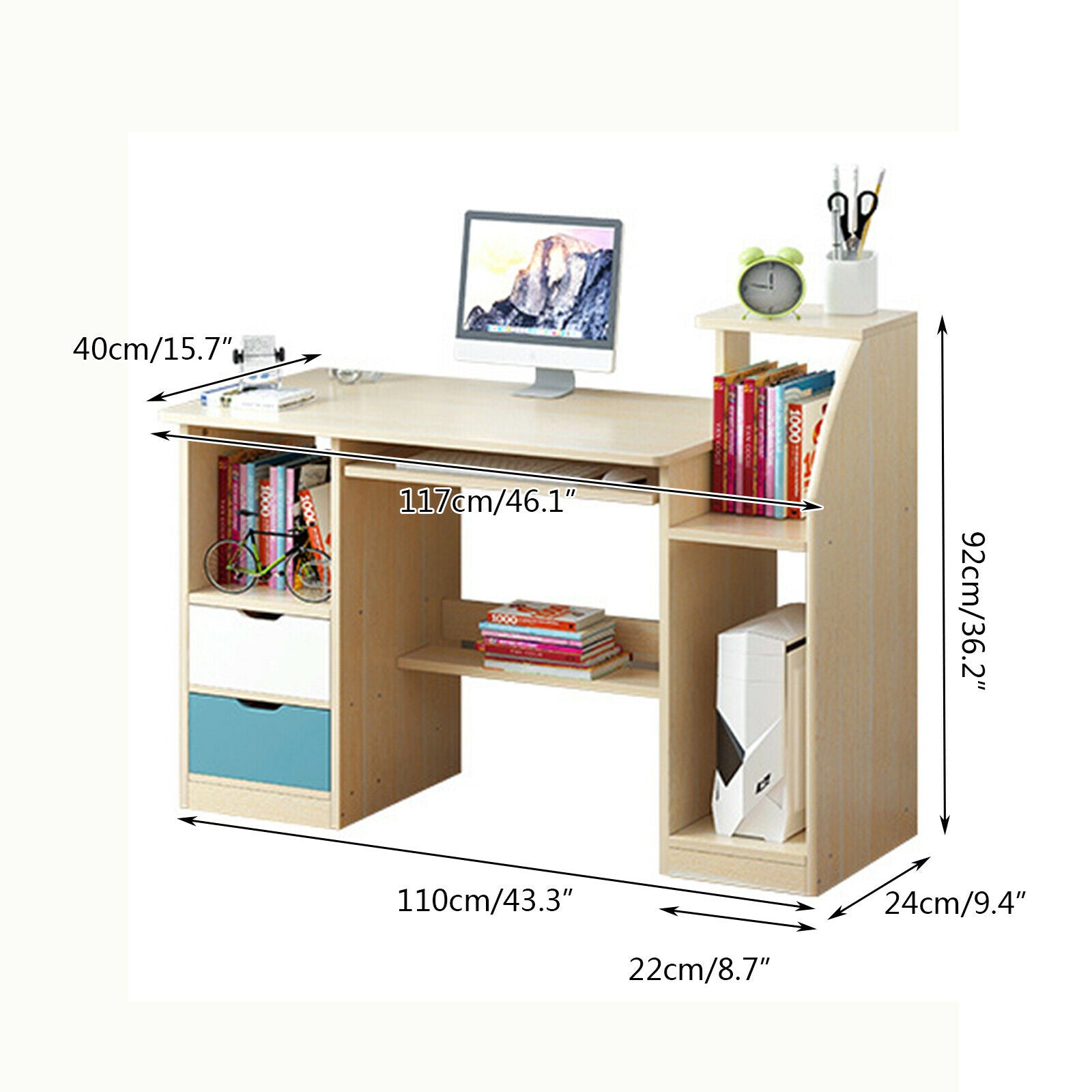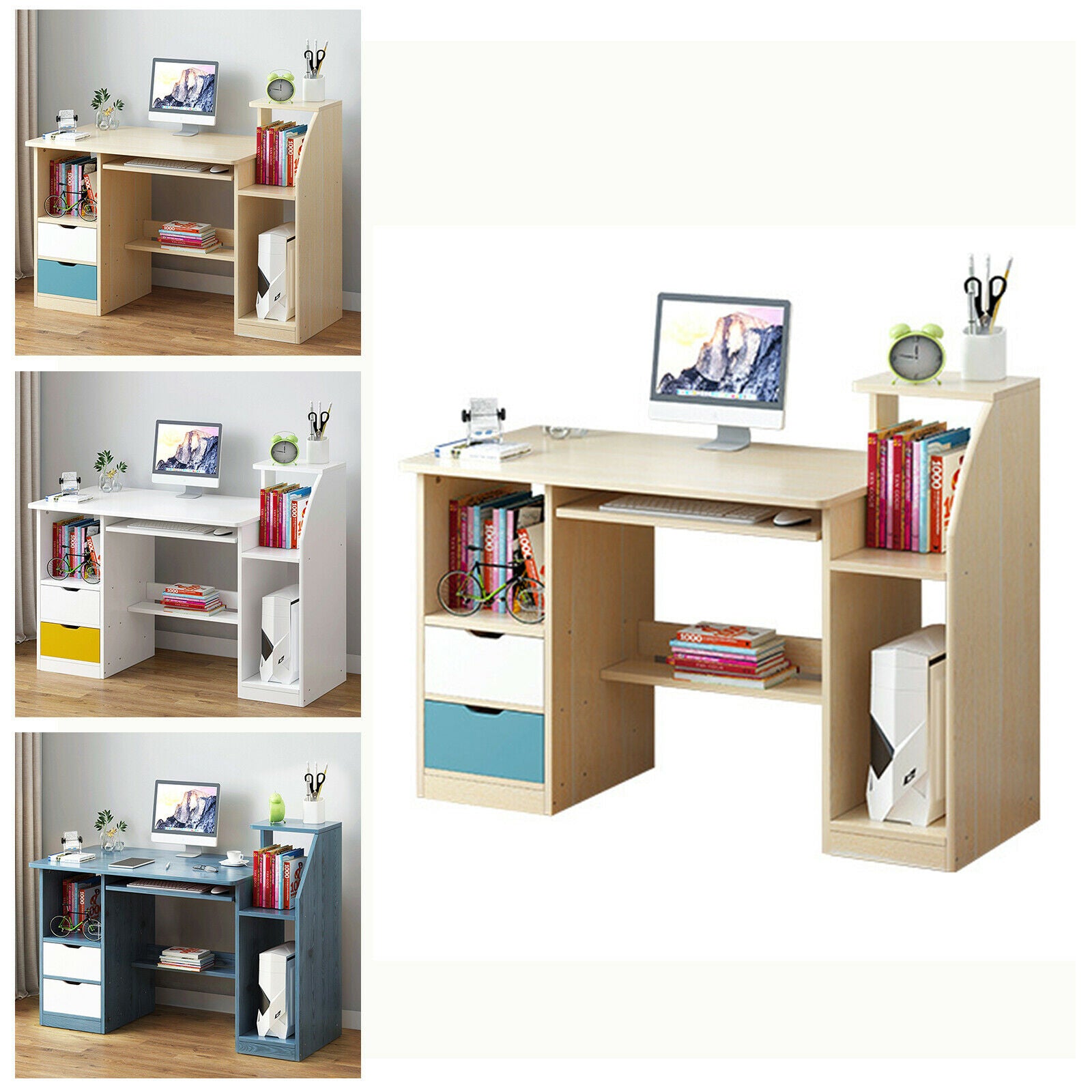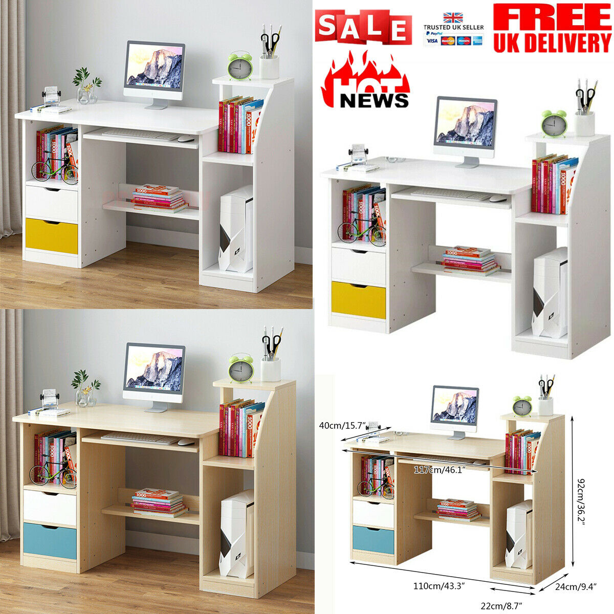 Computer Desk Study & 2 Drawers Laptop PC Table Home Office Shelves Workstation
