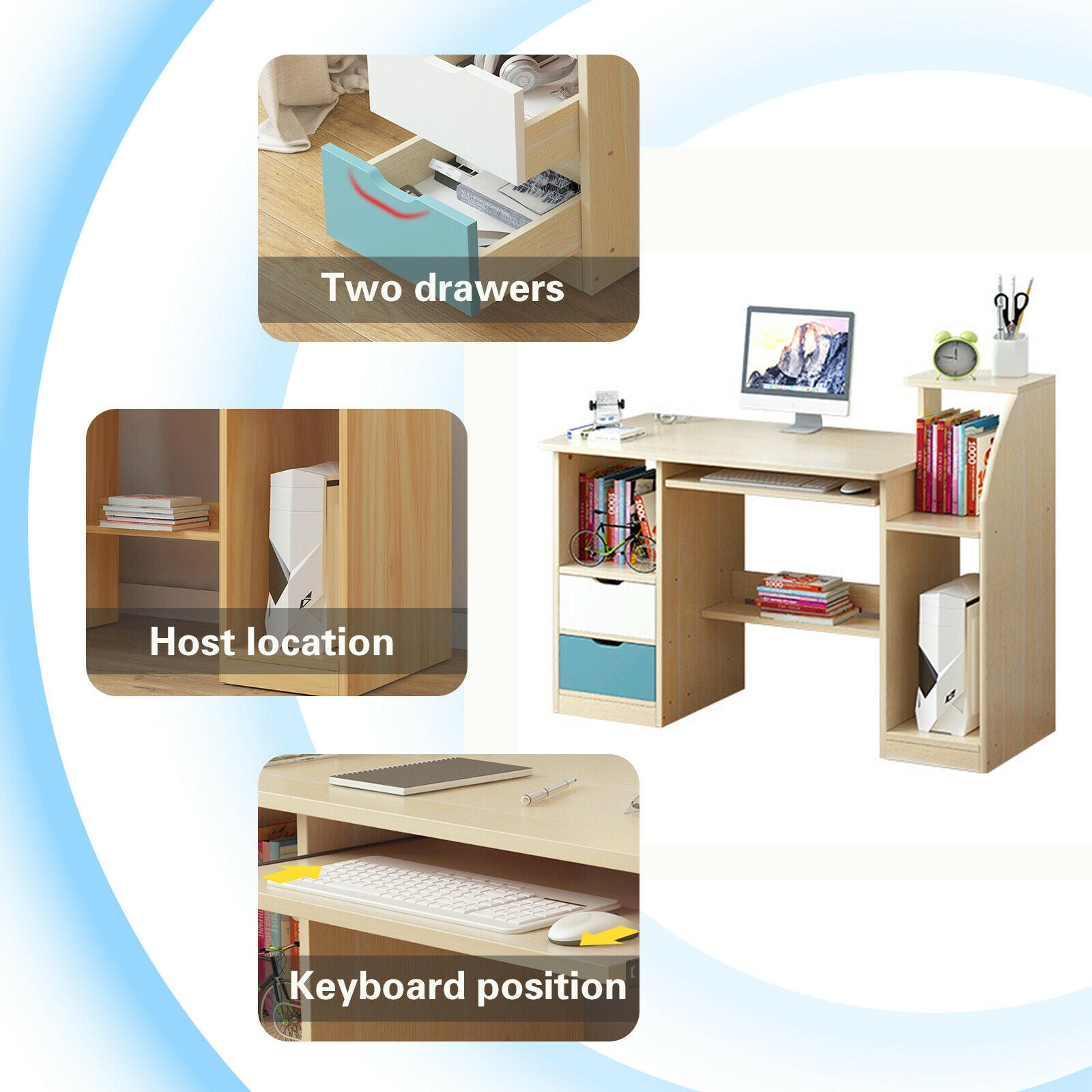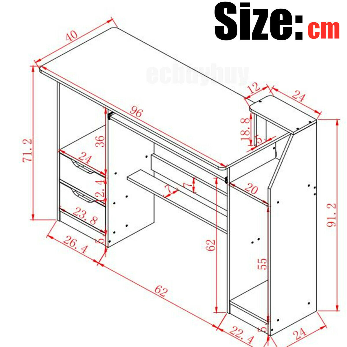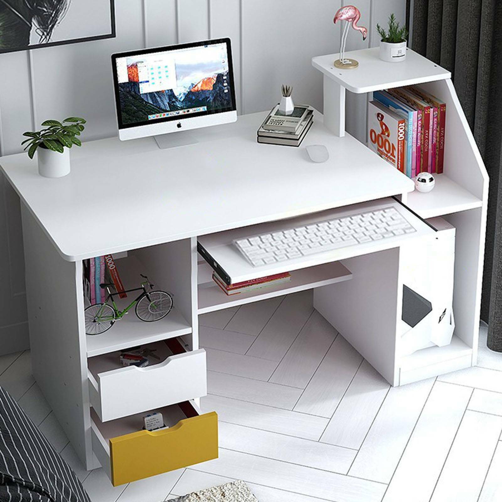 Computer Desk Study & 2 Drawers Laptop PC Table Home Office Shelves Workstation