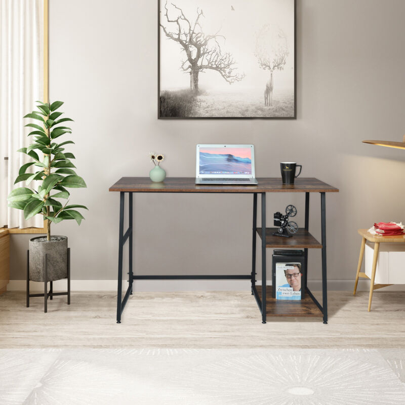 Computer Desk with 2 Tier Storage Shelves Study Writing Laptop Table Workstation
