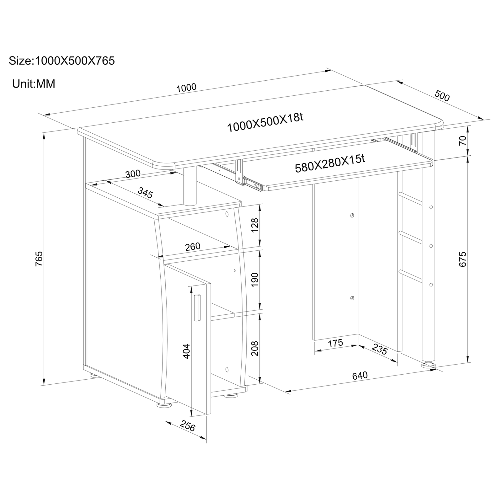 Computer Desk with Cupboard and Shelves for Home Office - Piranha Elver PC 1y