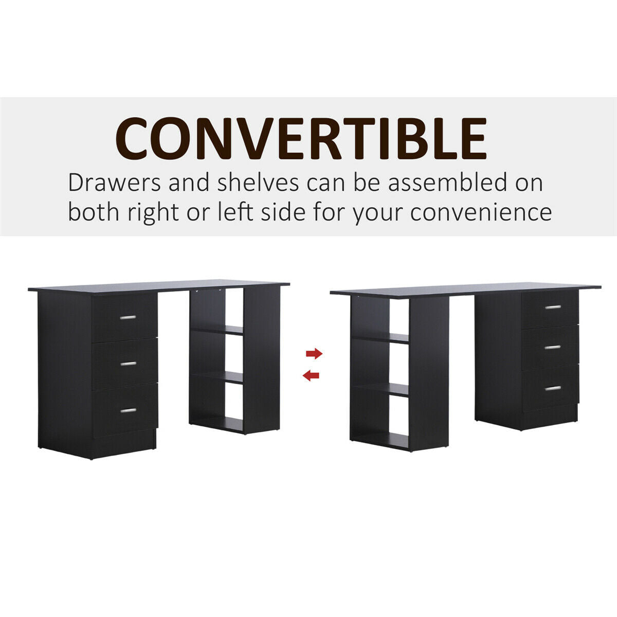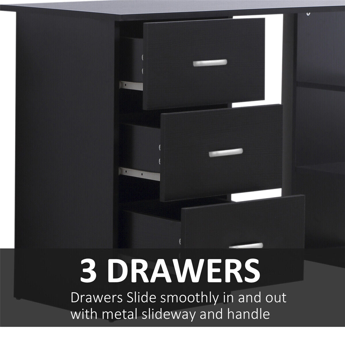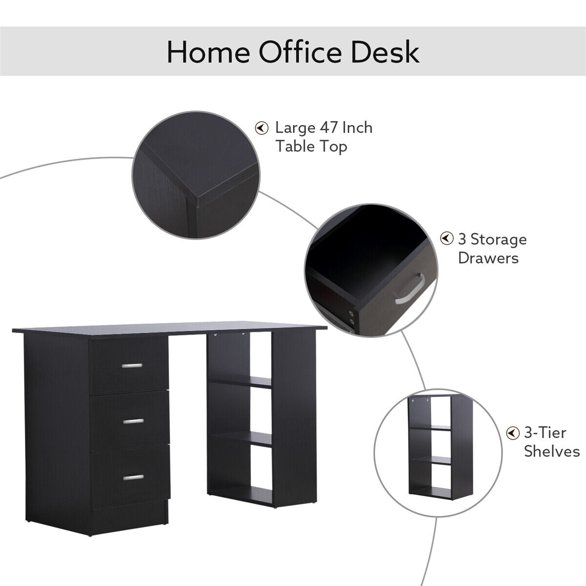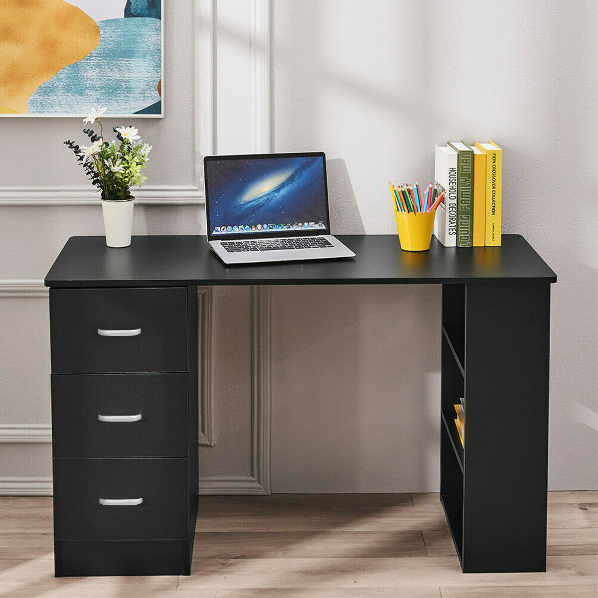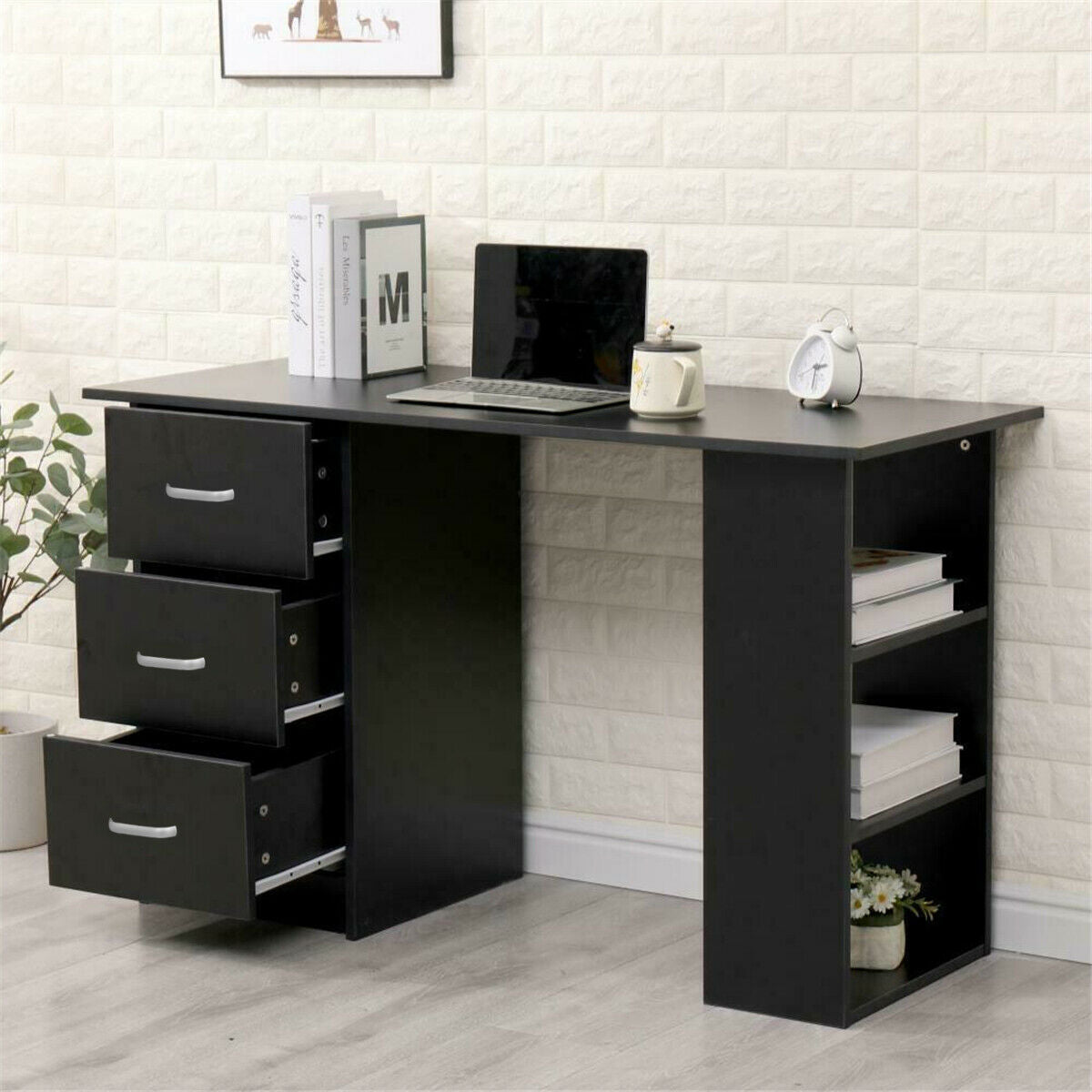 Computer Desk Writing Study Table W/ 3 Drawers 3 Shelf Home Study Book Shelf UK