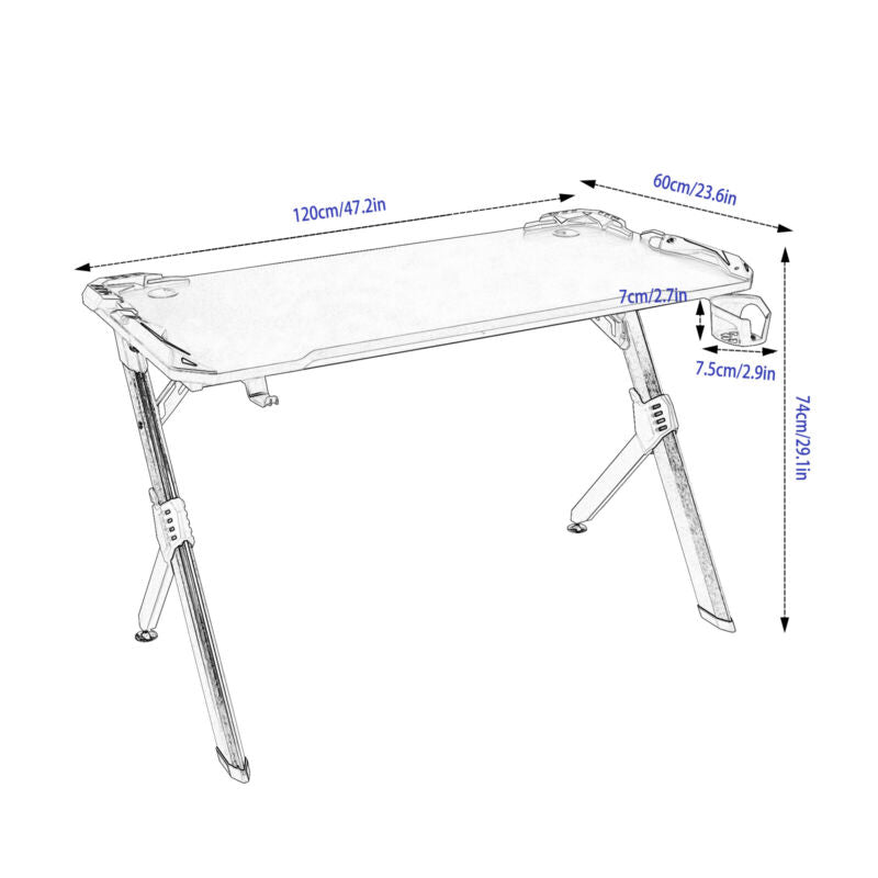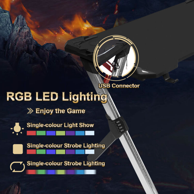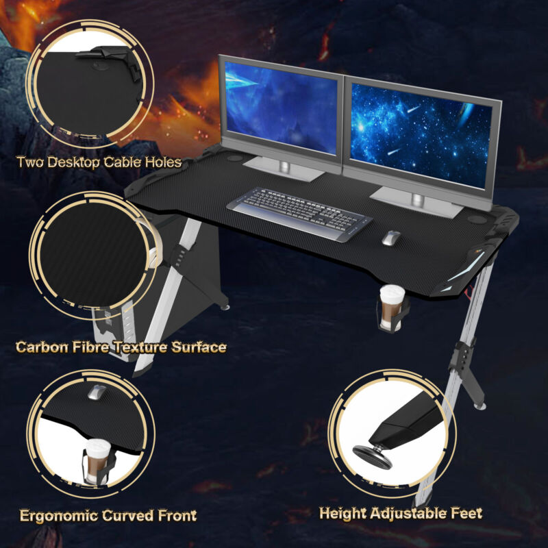 Computer Gaming Desk with Cup Holder Headphone Hook LED Racing Table Workstation