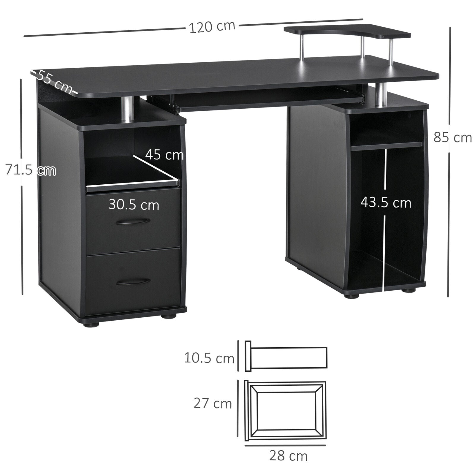 Computer Office Desk Table Workstation w/ Keyboard Tray, Drawer, Black