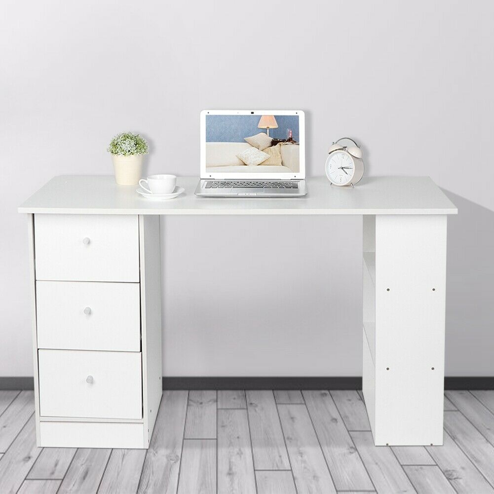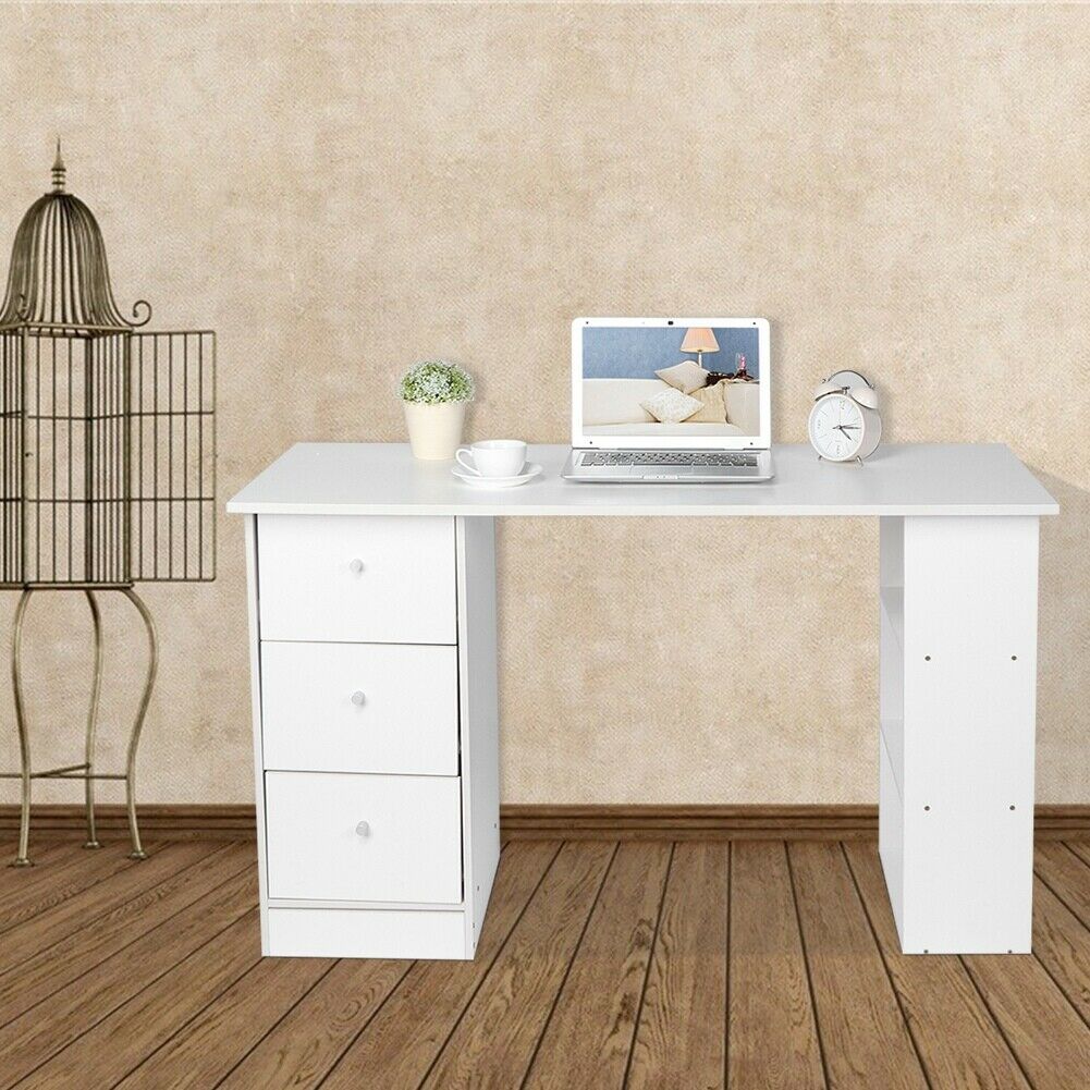 Computer Office Desk Wood PC Laptop Table Workstation With 3 Drawer & Shelves
