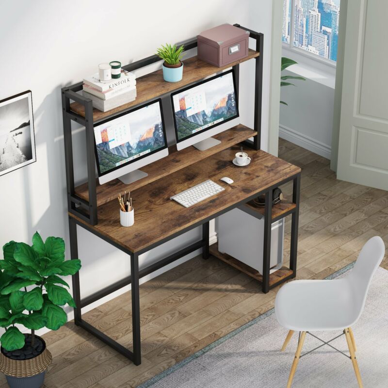Computer PC Desk with Hutch and Shelves Study Table Workstation for Home Office