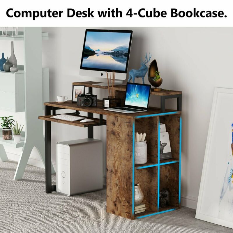 Computer Writing Desk Table with 4-Cube Bookcase & 24.2" Slide-out Keyboard Tray