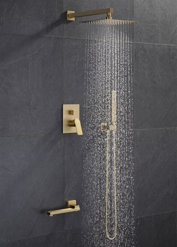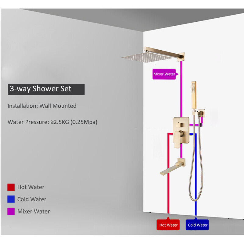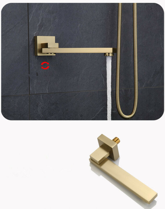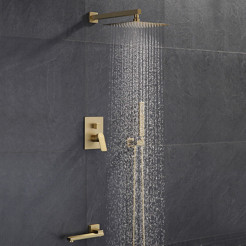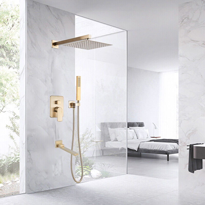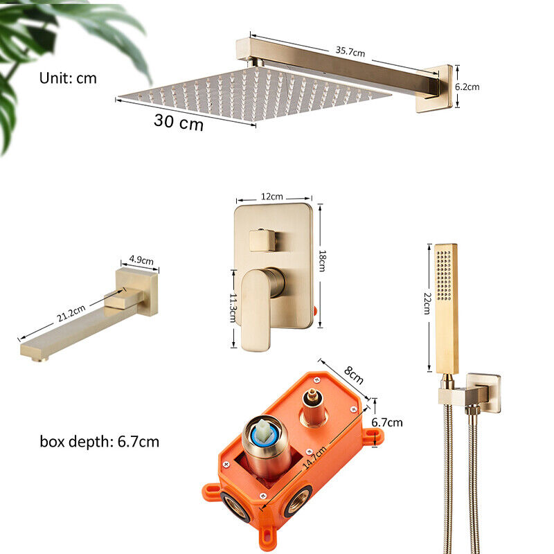 Concealed Shower Mixer Taps Square 30cmHead Spray Rail Bathroom Set Brushed Gold