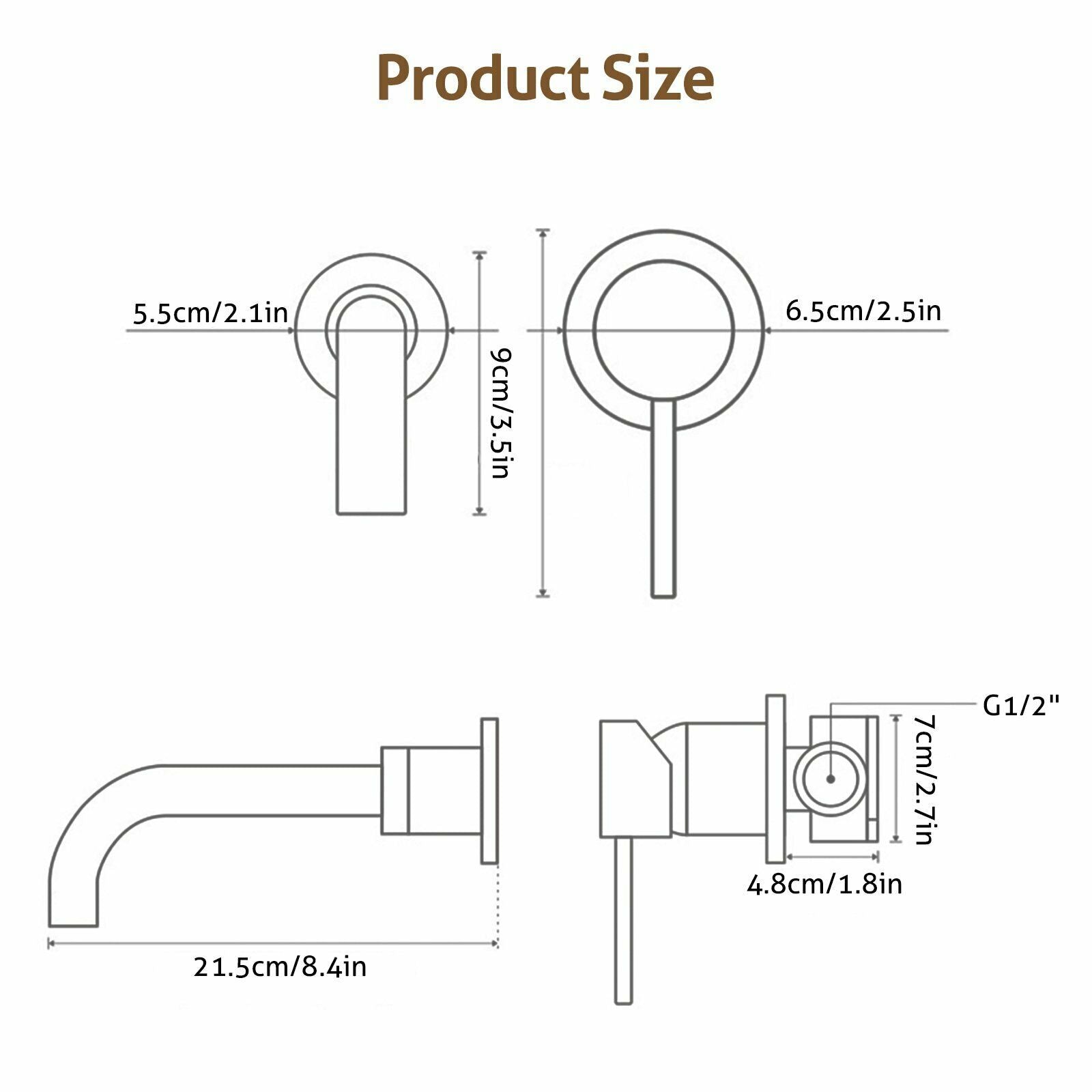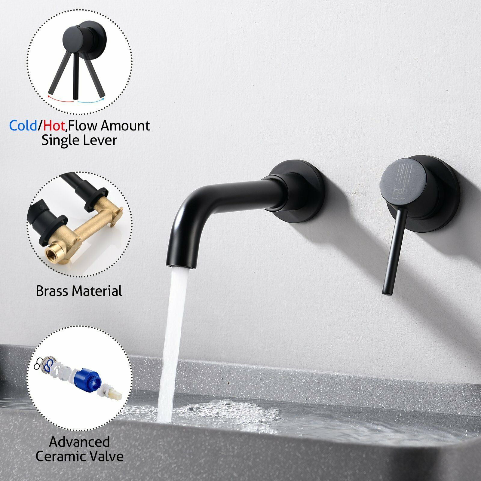 Concealed Wall Mount Bathroom Sink Taps Brass Faucet Mono Mixer Wash Basin Black