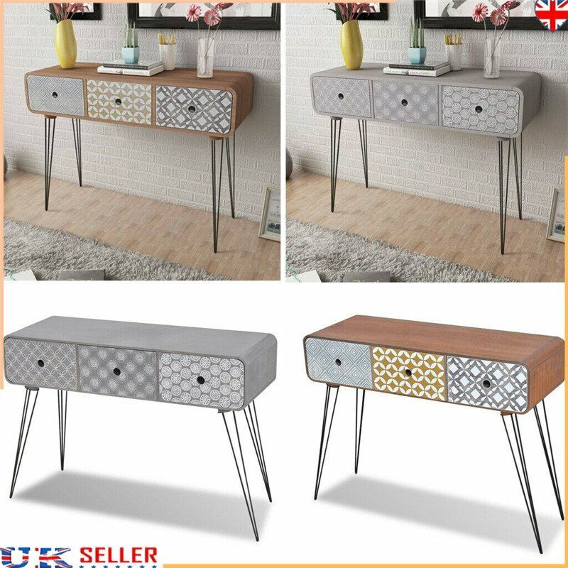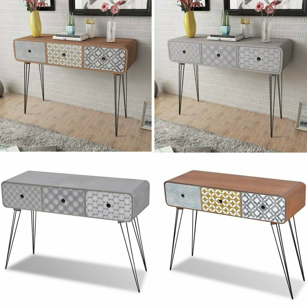 Console Hall Table Side End Dressing Desk with 3 Drawers Grey/Brown Furniture UK
