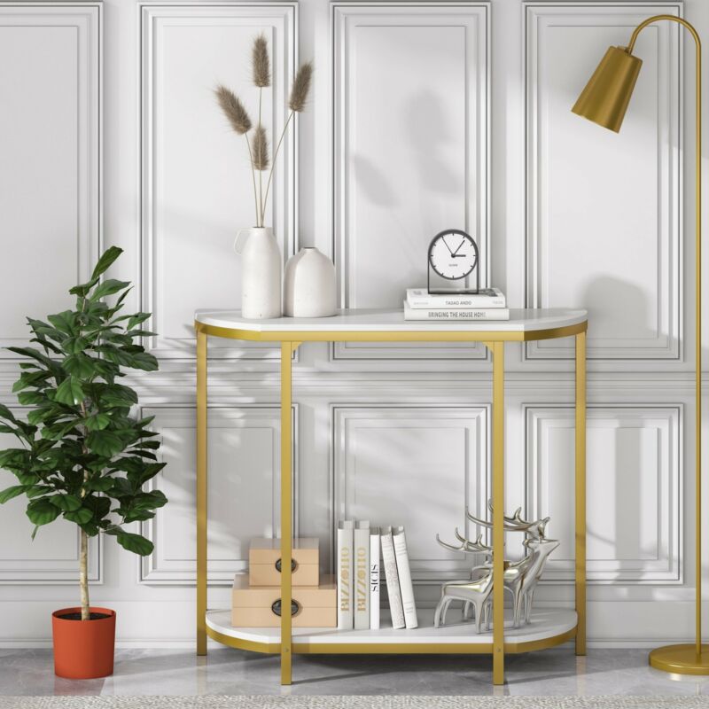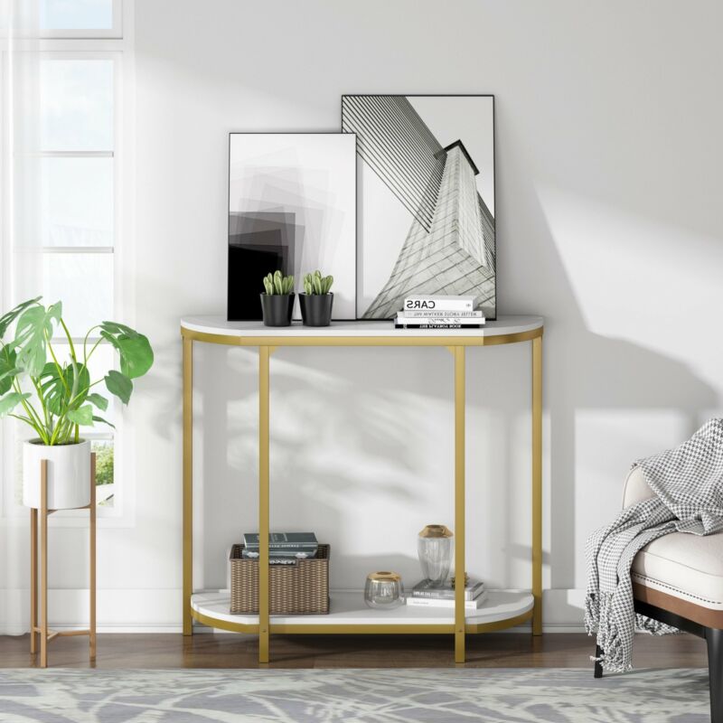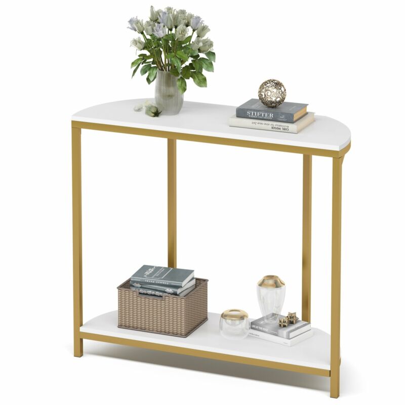 Console Sofa Table with 2 Shelves White Hallway Table for Living Room Corridor