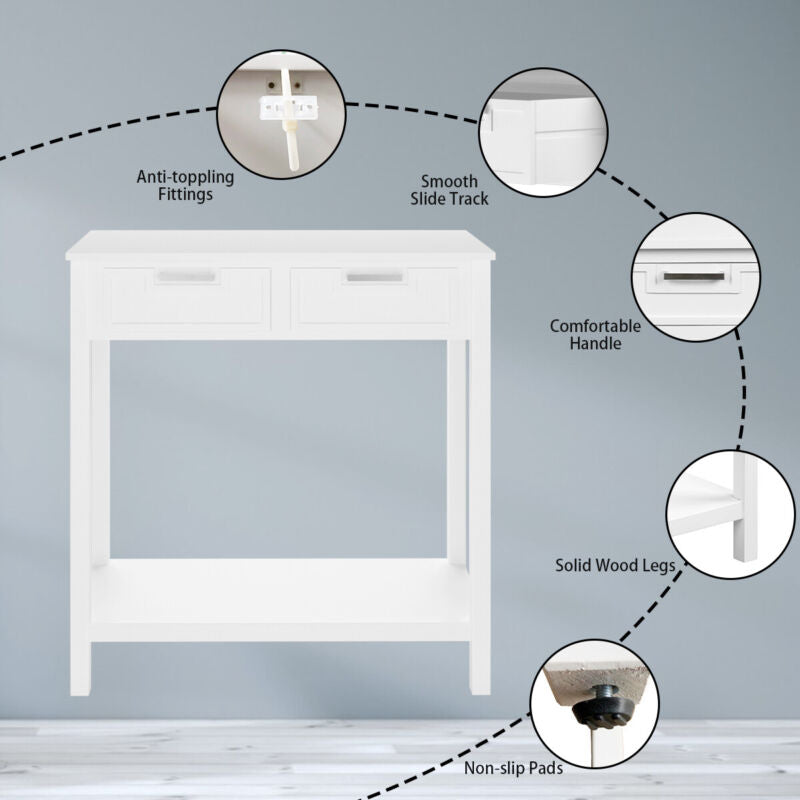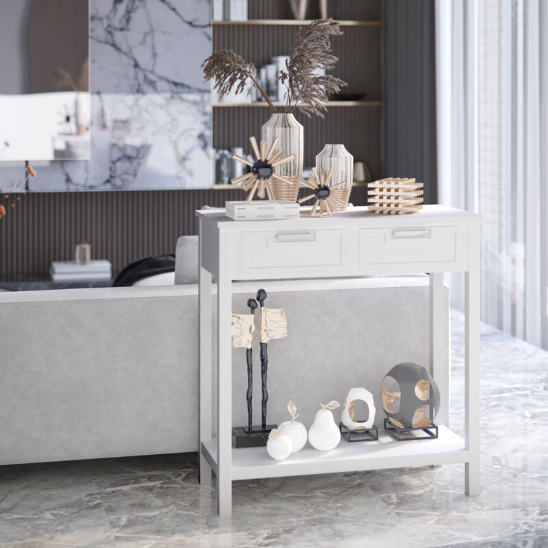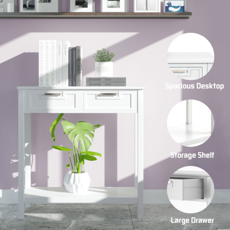 Console Table Wooden Entryway Side Table w/2 Drawers and Storage Shelf Vanity