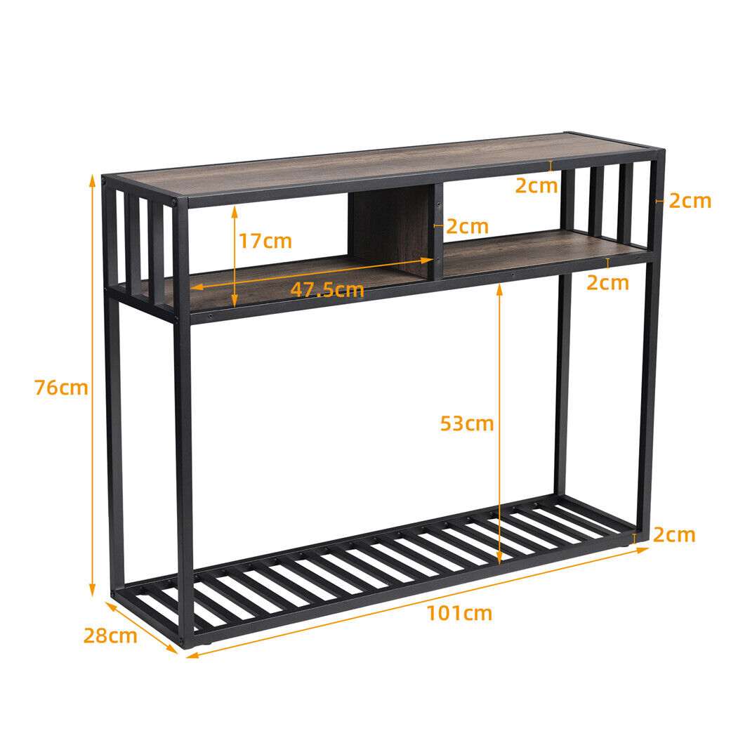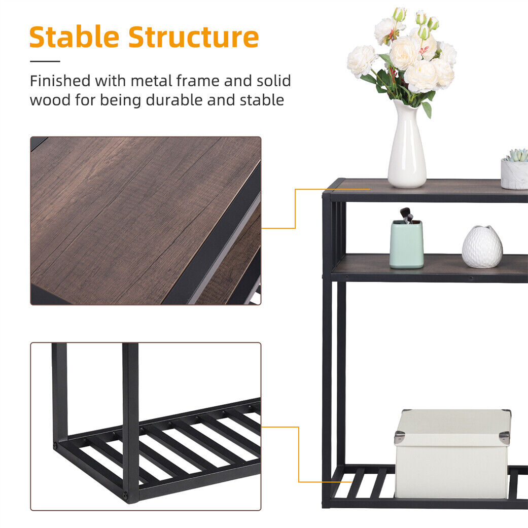 Console Table Wooden Hall Desk Side End Table Storage Shelf w/ Black Metal Frame