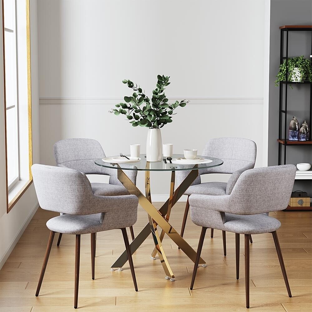 Contemporary Clear Glass Dining Table Cross Chrome Legs Round Kitchen Table
