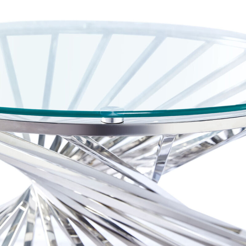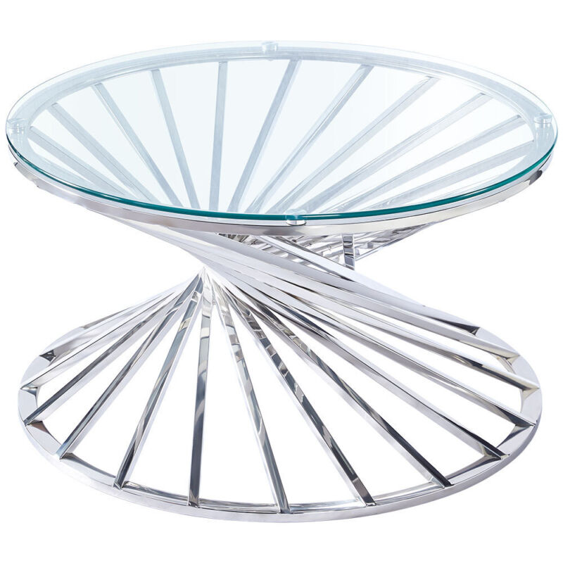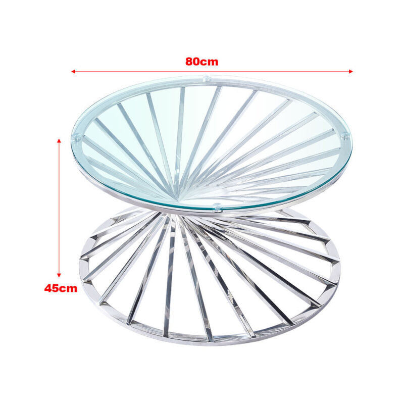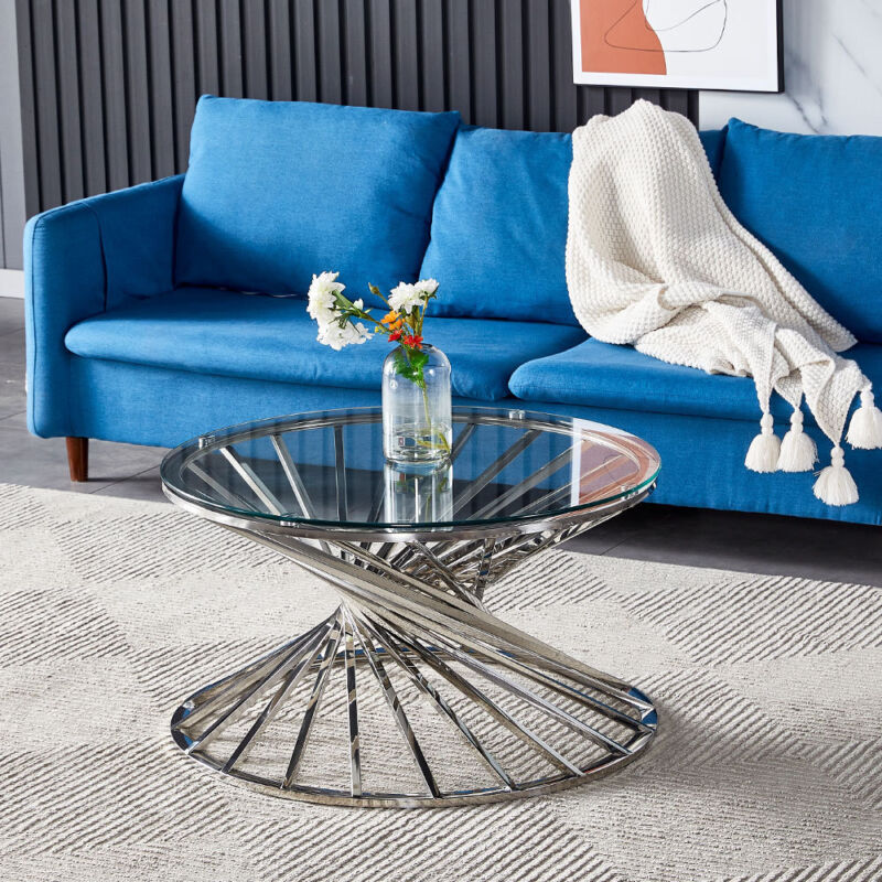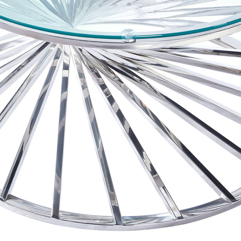Contemporary Clear Glass Top Coffee Table Stainless Steel Leg Living Room Table