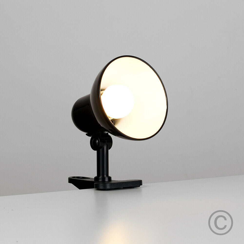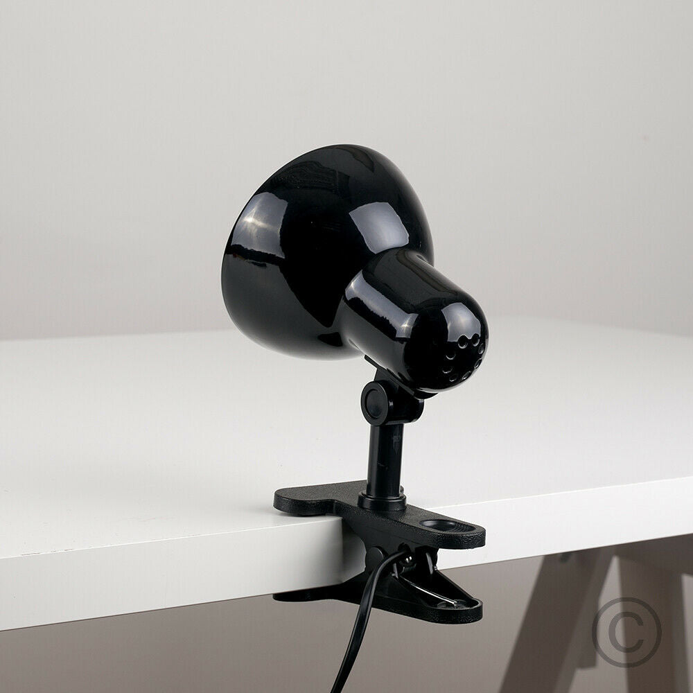 Contemporary Desk Lamp Clip On Spotlight Table Gloss Black Finish Metal Lamp
