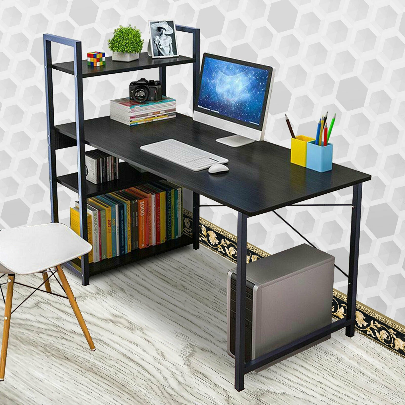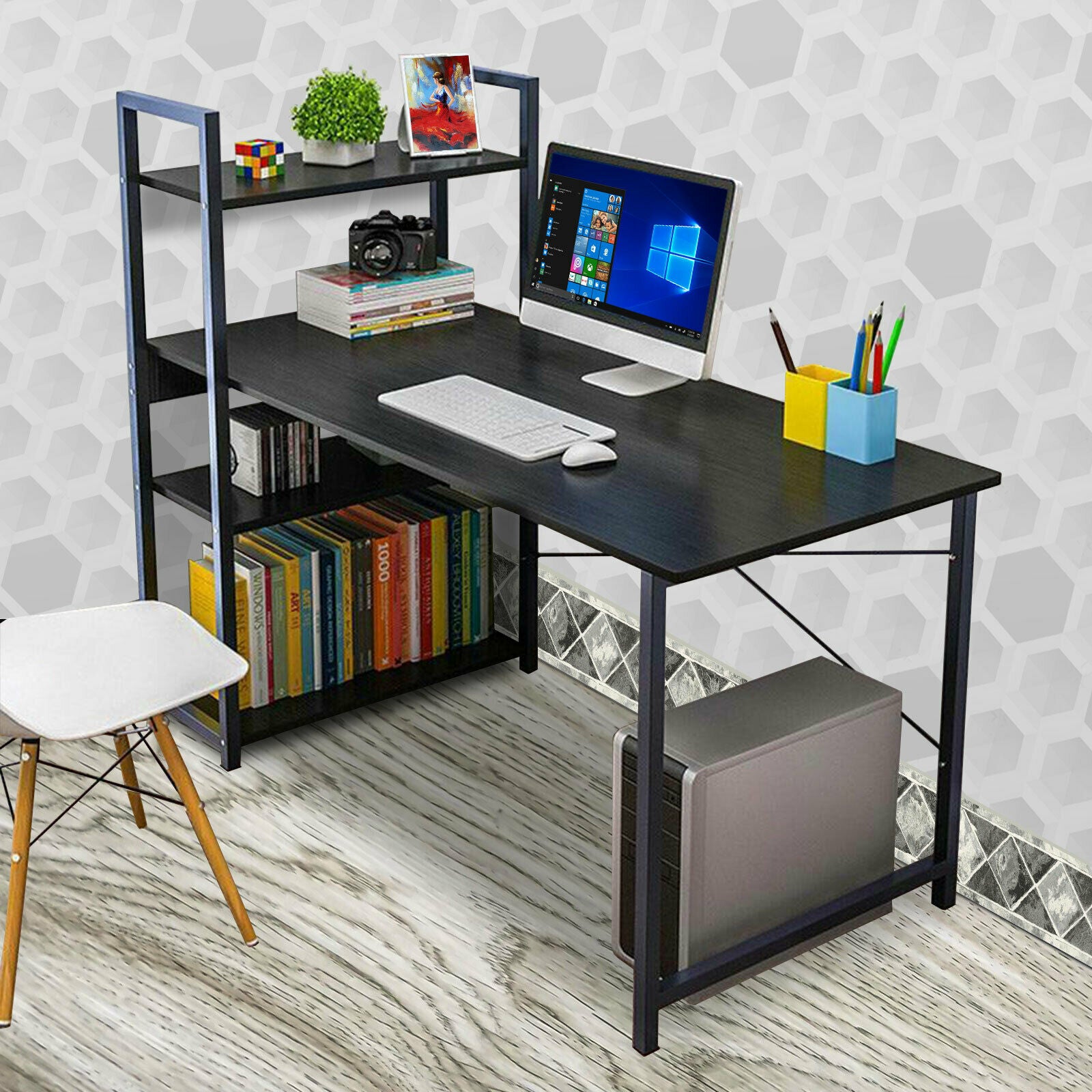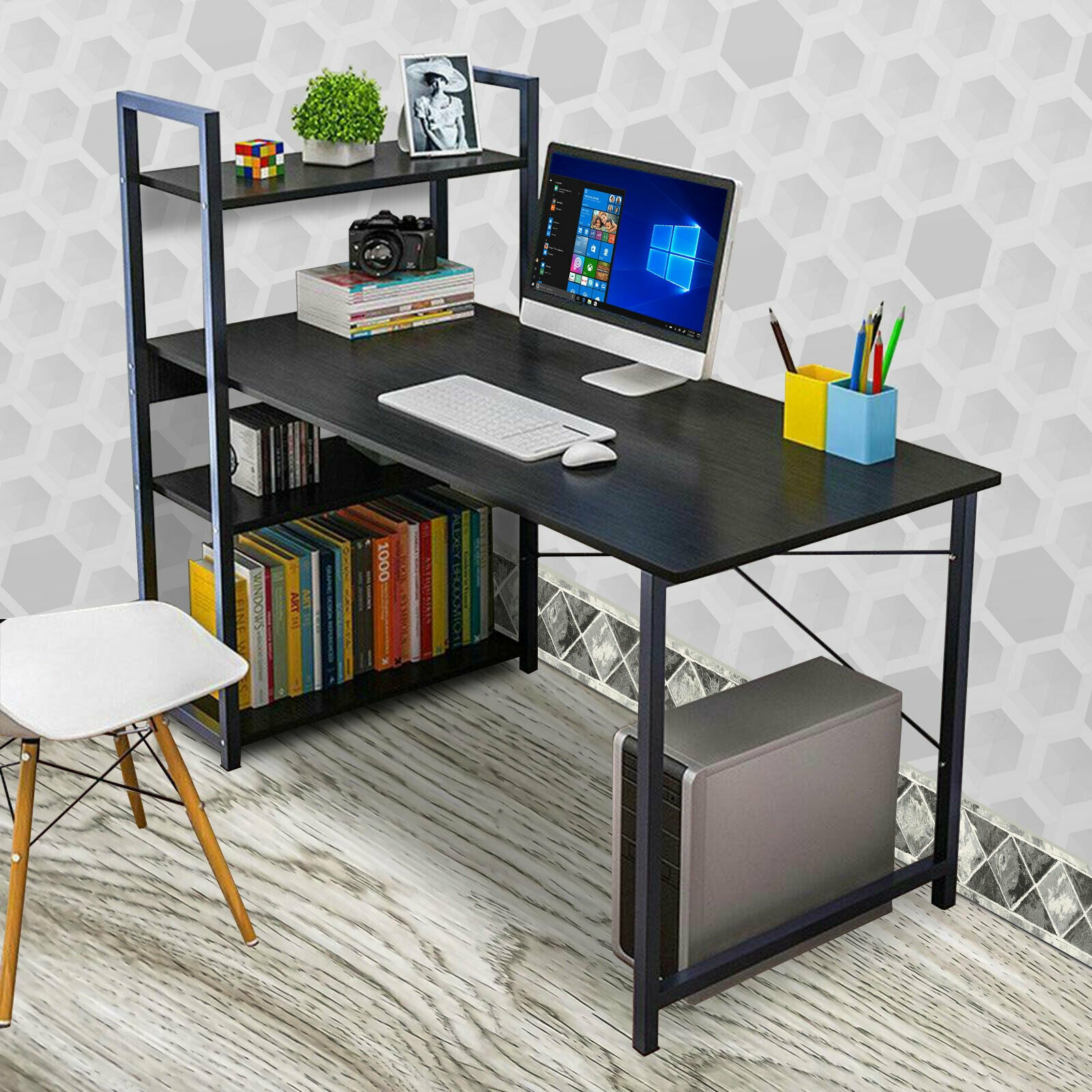 Corner Computer Desk H-shaped PC Laptop Table Home Office Workstation +4 Shelves