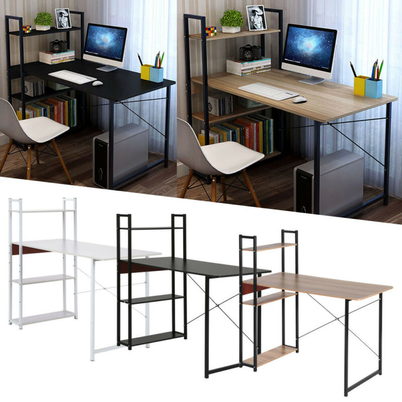 Corner Computer Desk - Home Office PC Laptop Table With Shelves Corner Desk UK