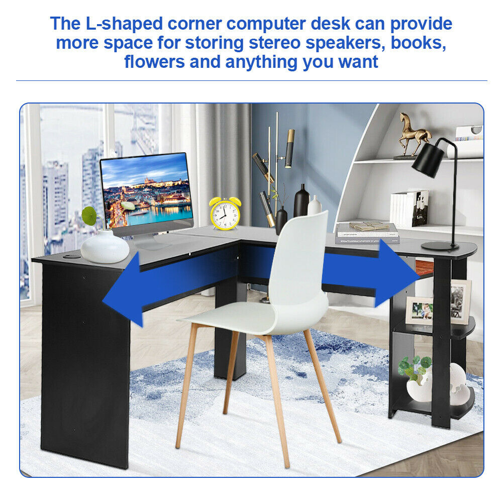 Corner Computer Desk L-shaped PC Study Table Home Office Workstation Furniture