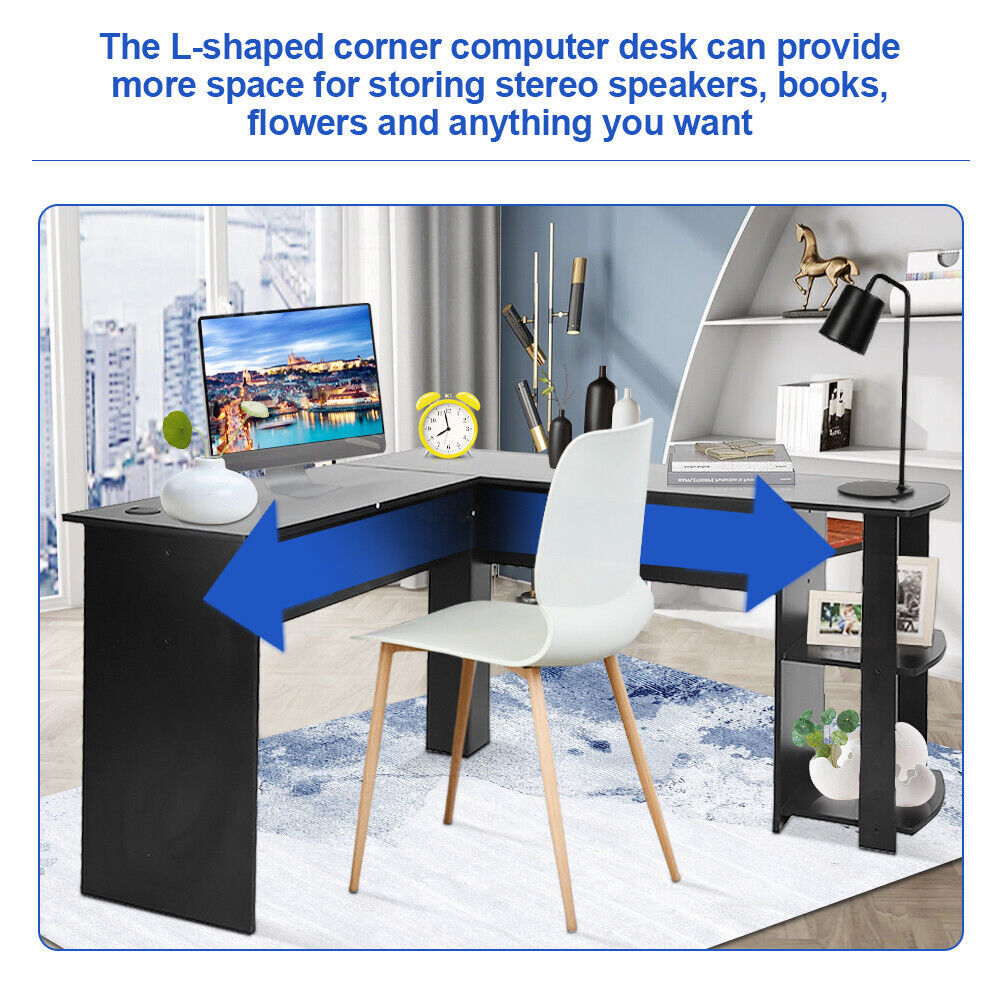 Corner Computer Table Laptop Gaming Desk Home Office Study Workstation W/ Shelf