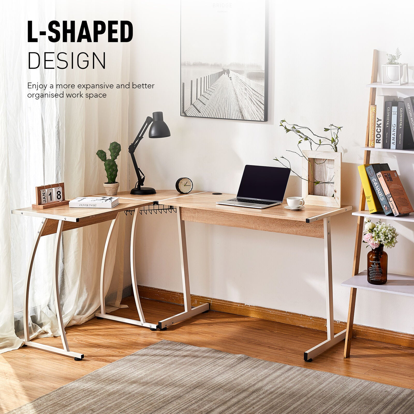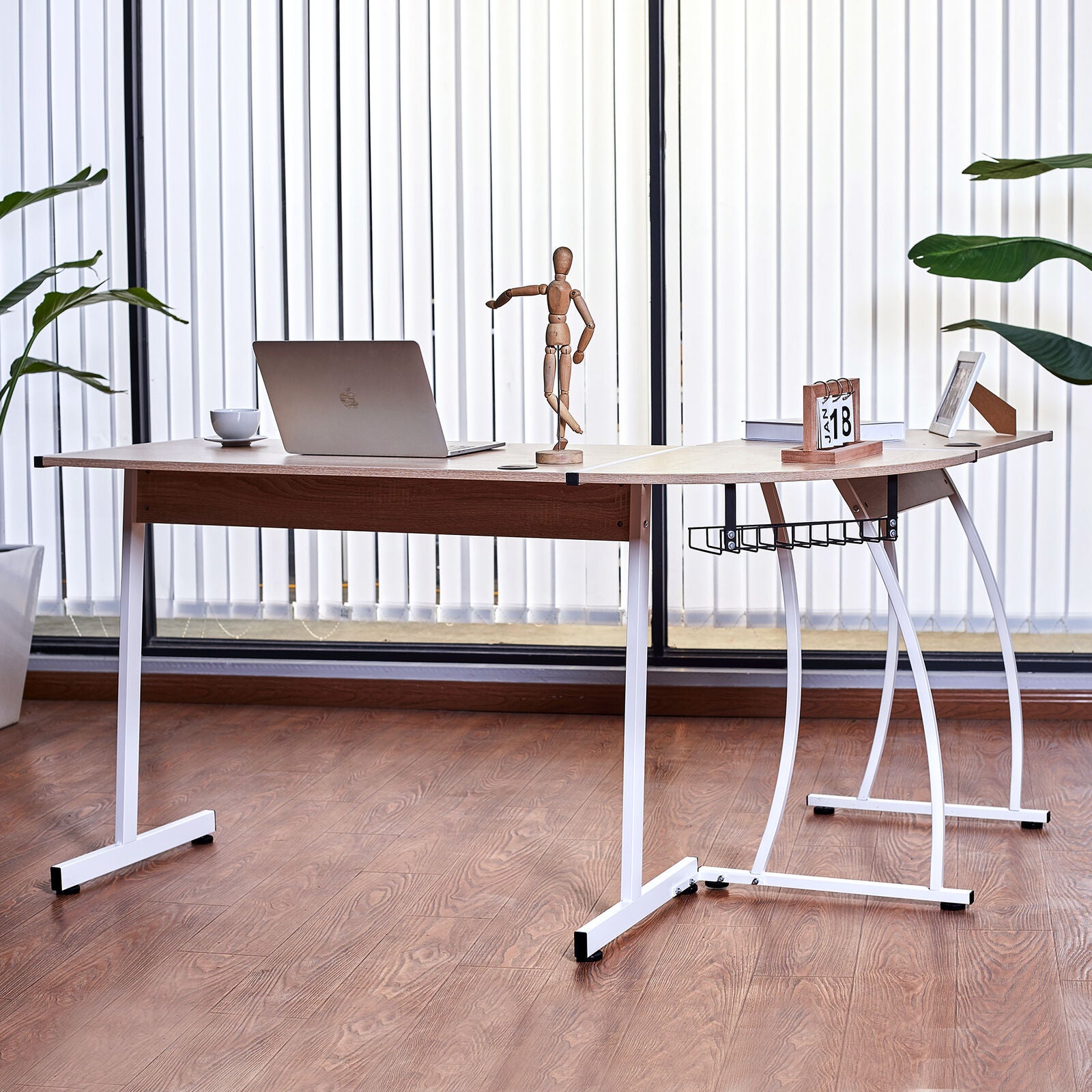 Corner Desk Table L-Shaped Oak Gaming Computer Study Home Office PC Workstation