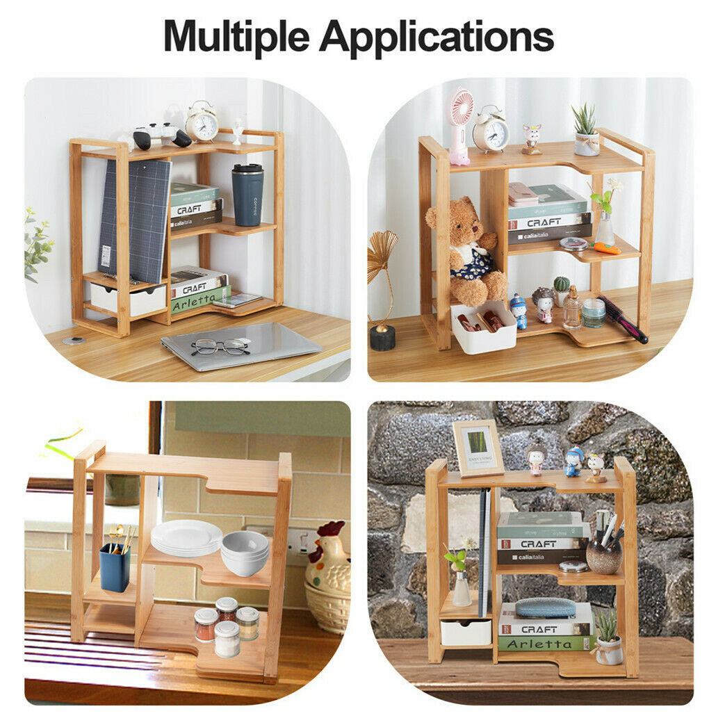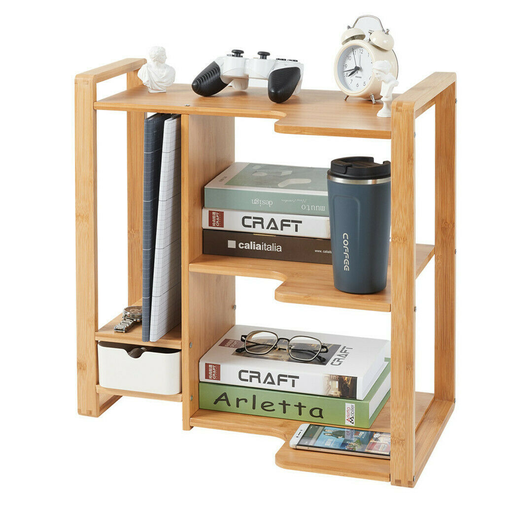 Corner Desktop Bookshelf Stand Display Shelf Rack Bookcase Home Office Organizer