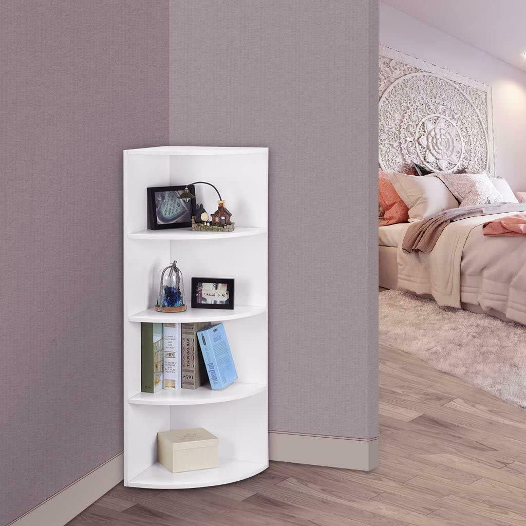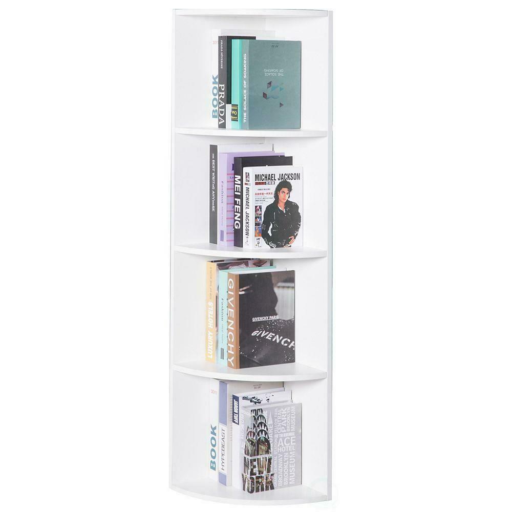 Corner Shelf 4 Tier Shelving Rack Unit White Display Stand Home Book Storage
