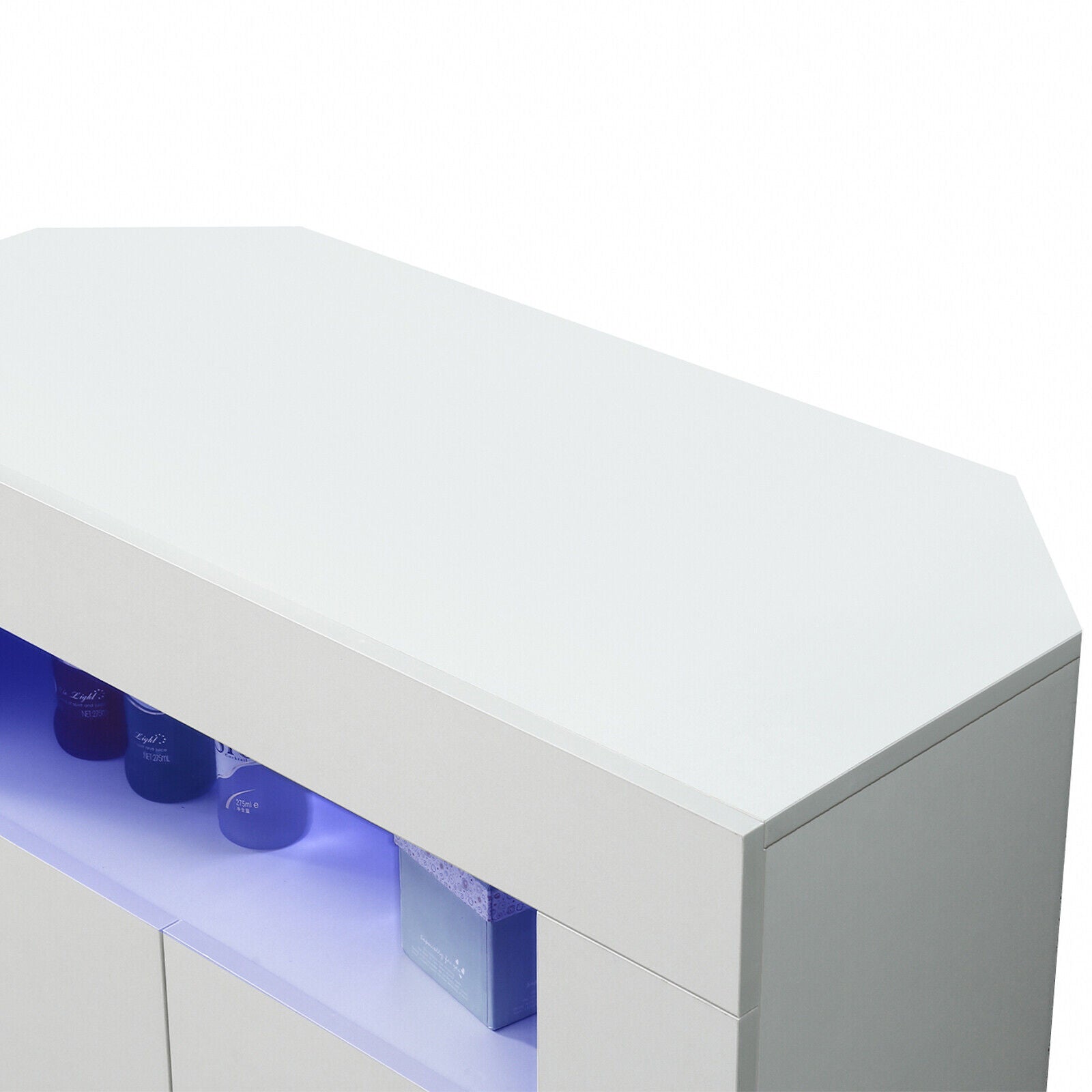 Corner TV Unit Stand Cabinet Media Storage Console Shelf Cupboard RGB LED Lights