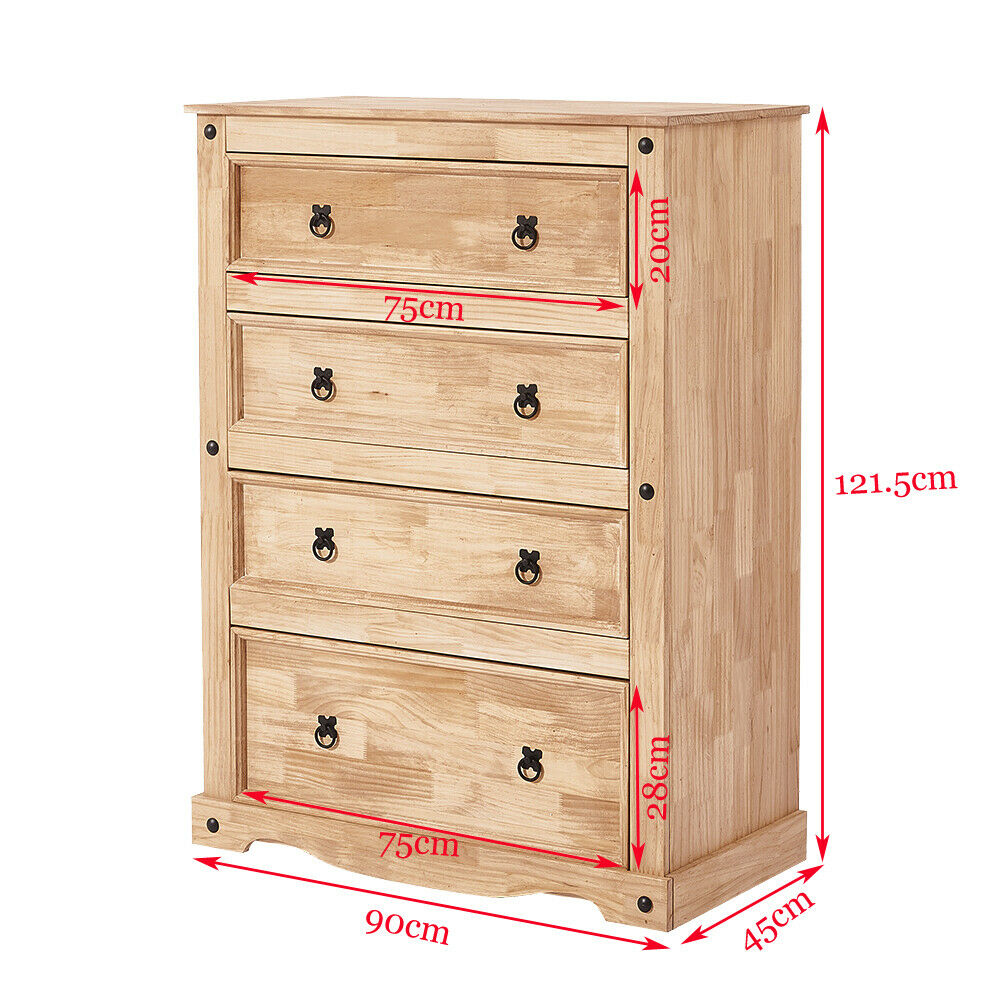 Corona Chest of Drawers Rustic 4 Drawer Mexican Solid Pine Waxed Bedroom Storage