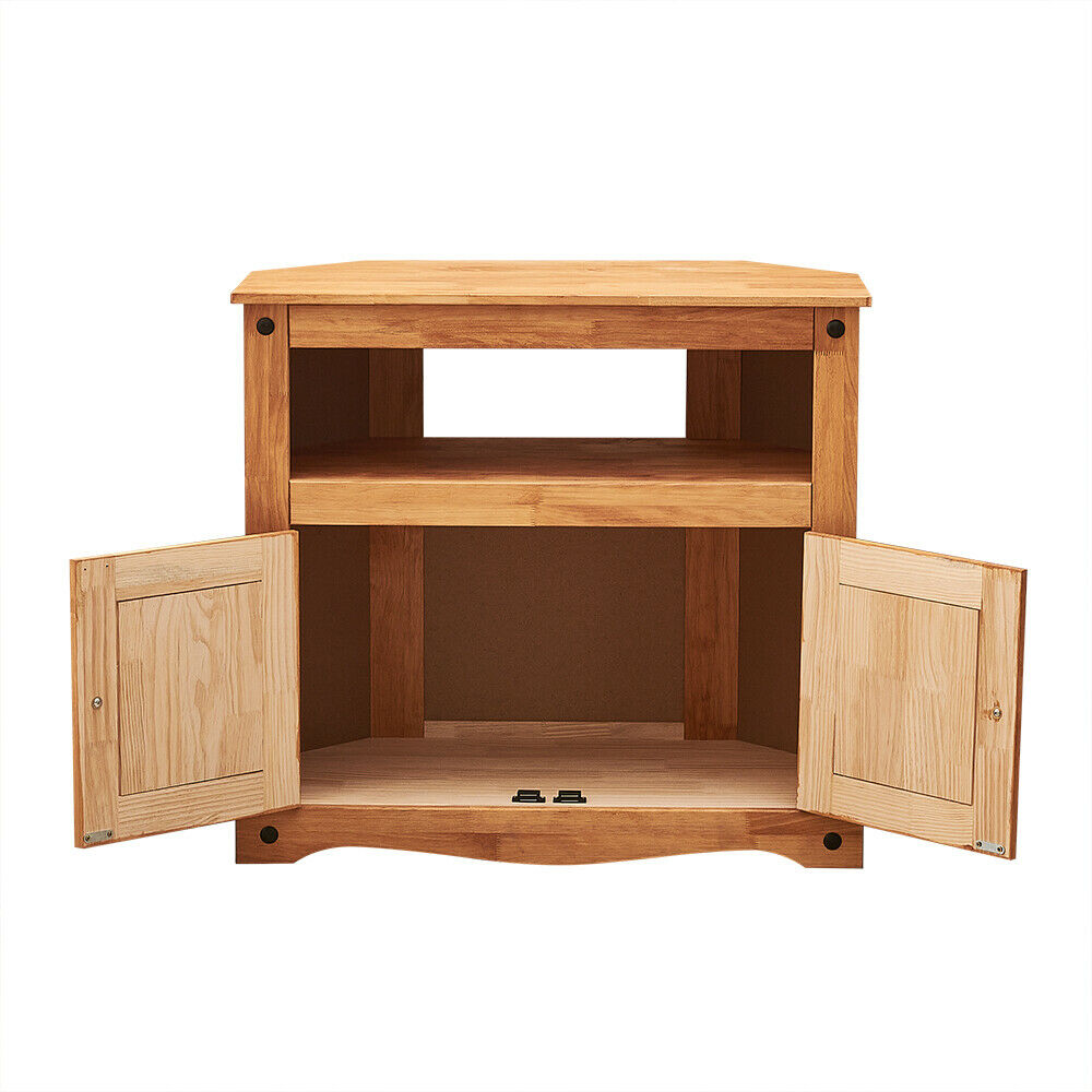 Corona TV Unit Corner Media Cabinet Stand 2 Door Solid Pine Mexican Style